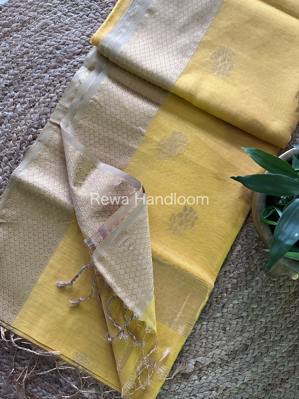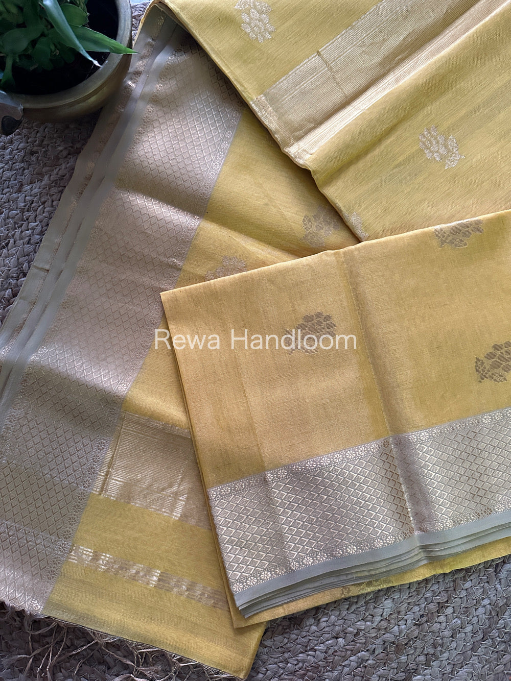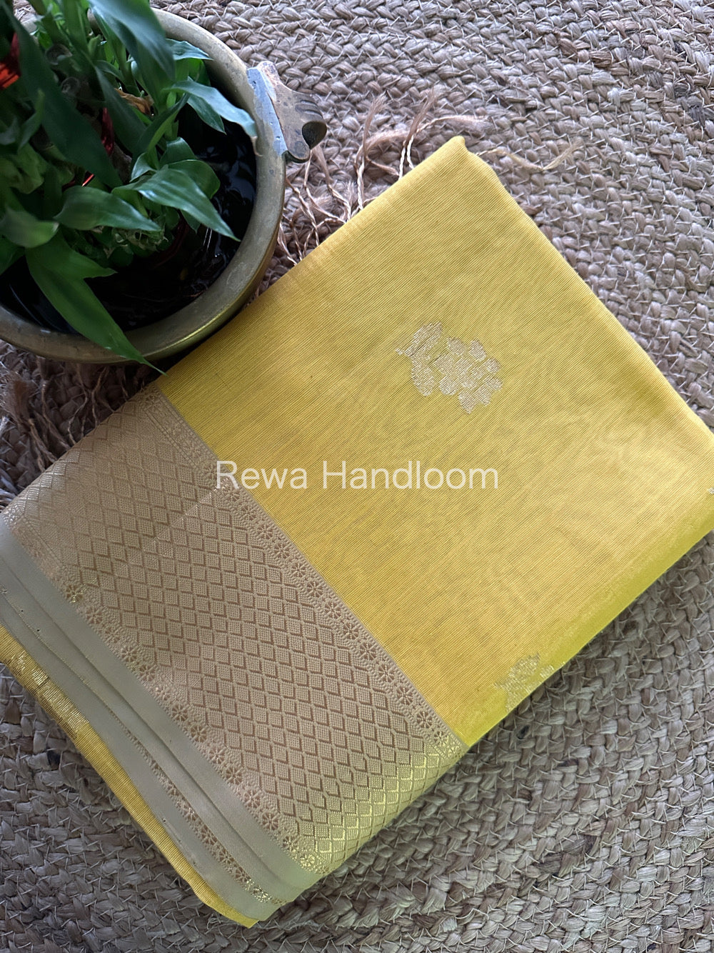 Maheshwari Light Yellow Tissue Silk Saree-TFB01