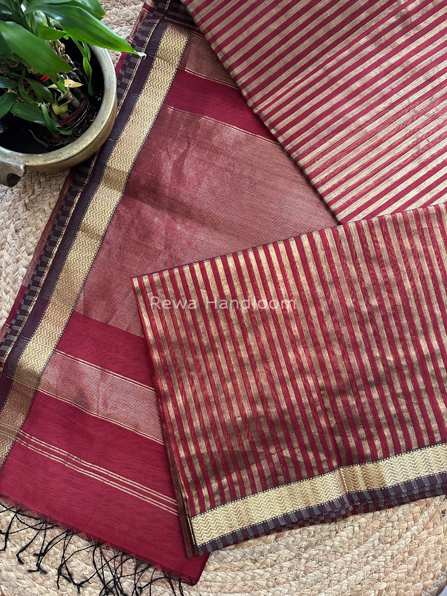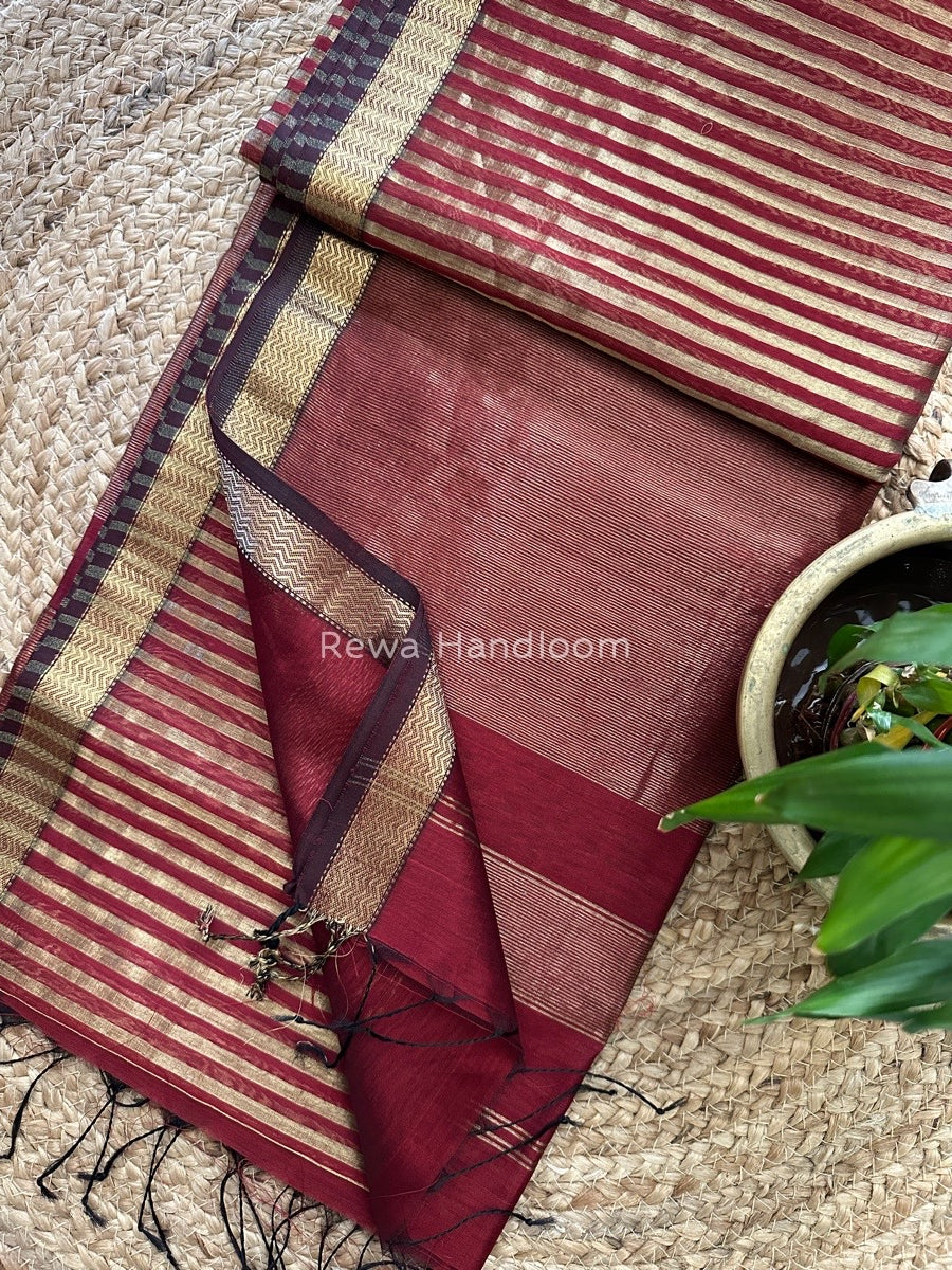 Maheshwari Maroon Tissue Silk Saree TZLS013