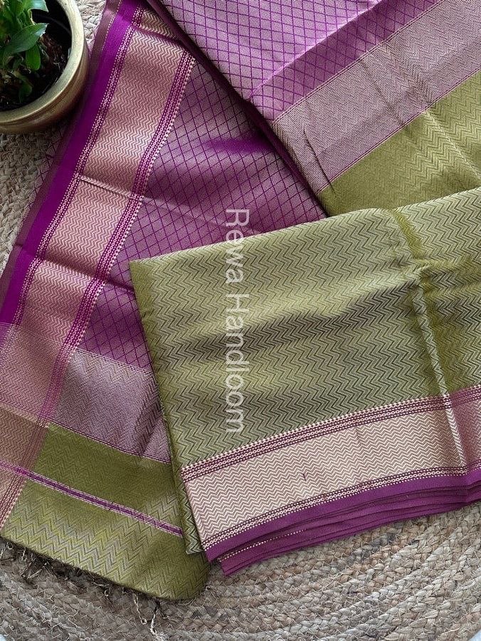 Maheshwari Mehendi Green 4 Pedal Tissue Saree FBS018