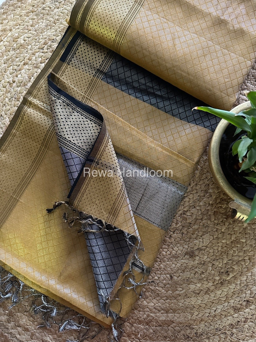 Maheshwari Mustard Yellow 4 Pedal Tissue Saree FBS014