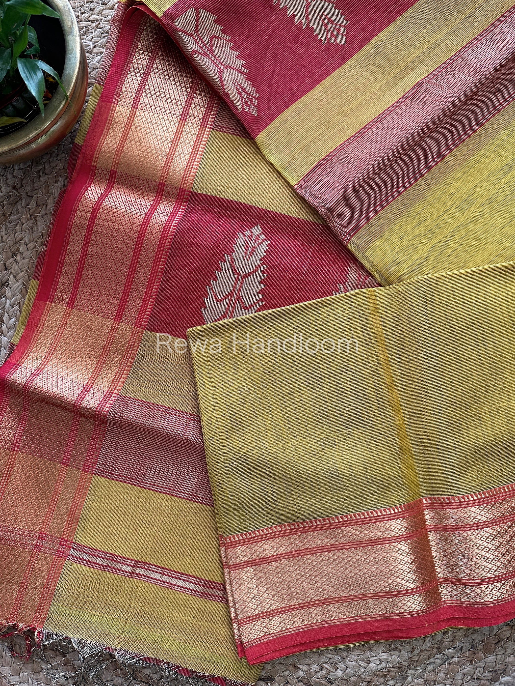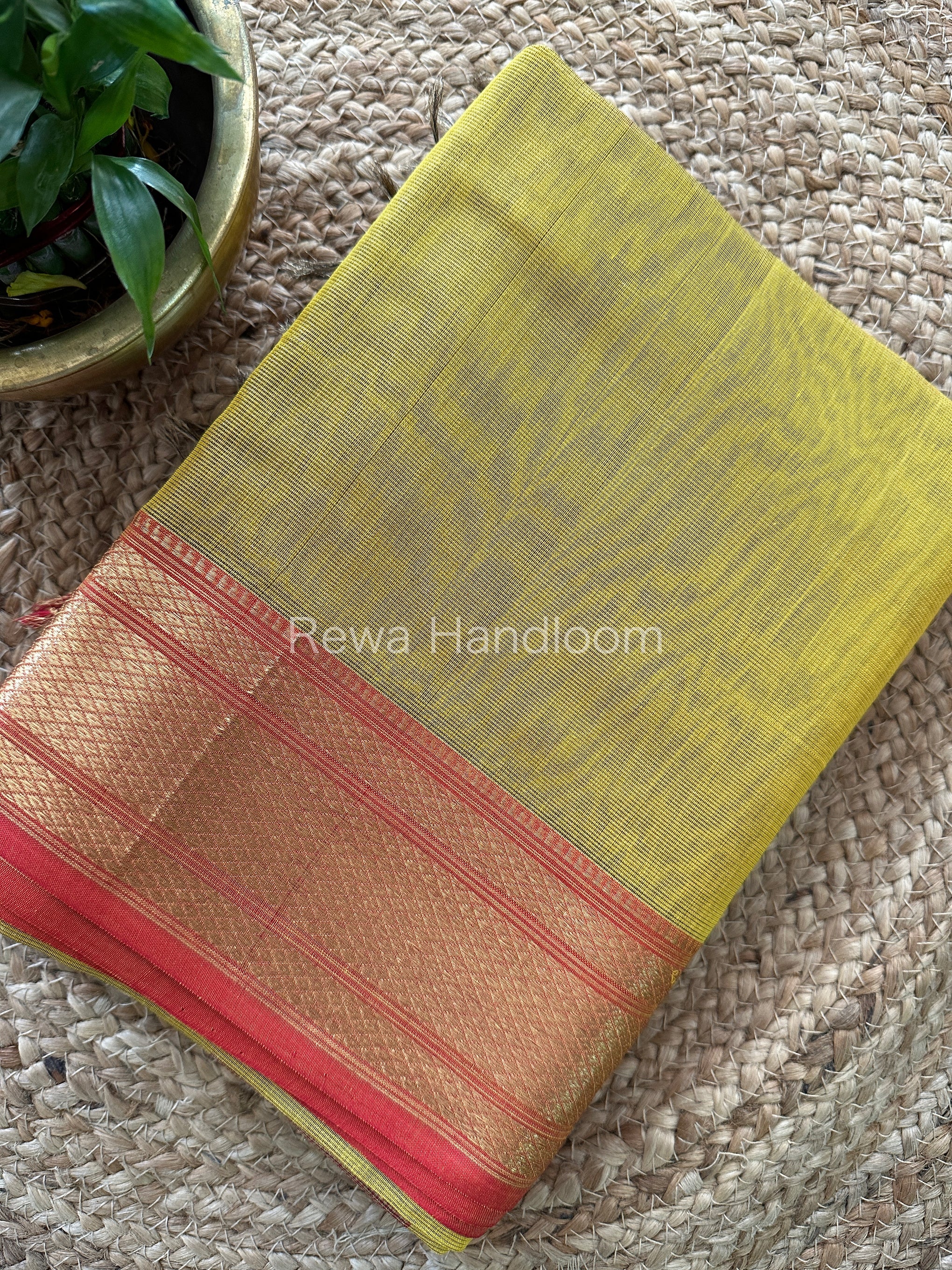 Maheshwari Mustard Yellow Tissue Silk Saree TBS010