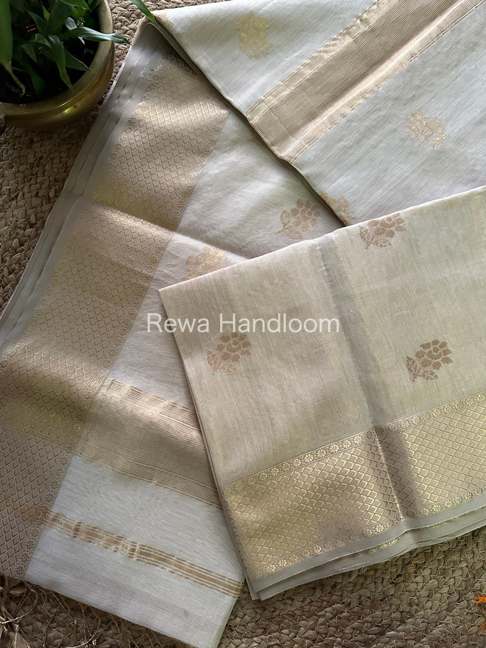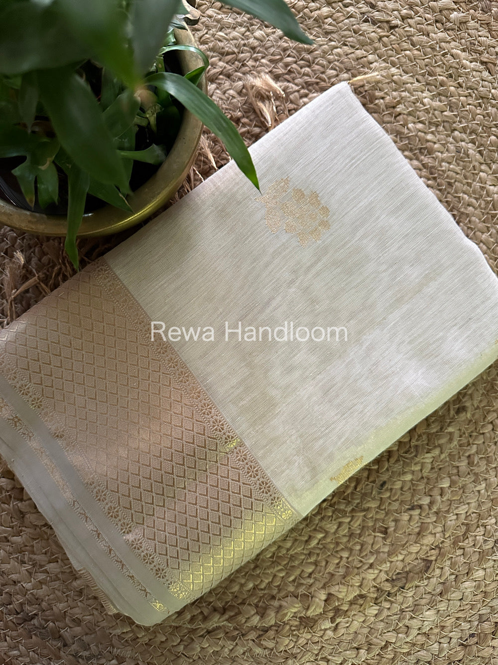 Maheshwari Off White Tissue Silk Saree-TFB00