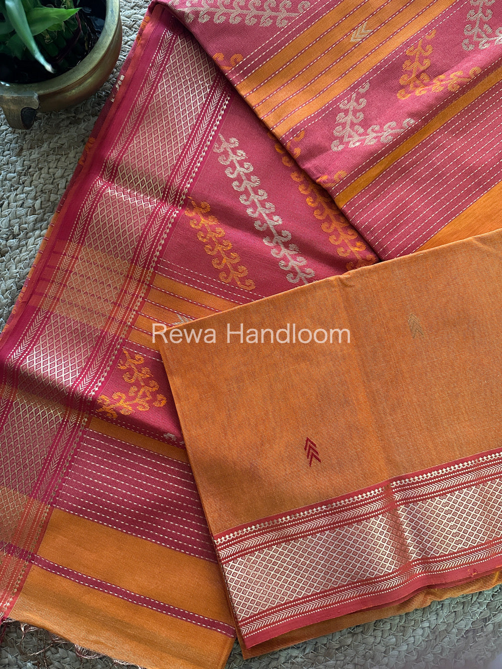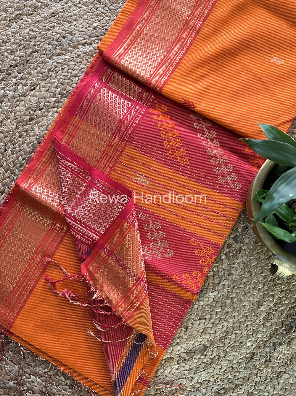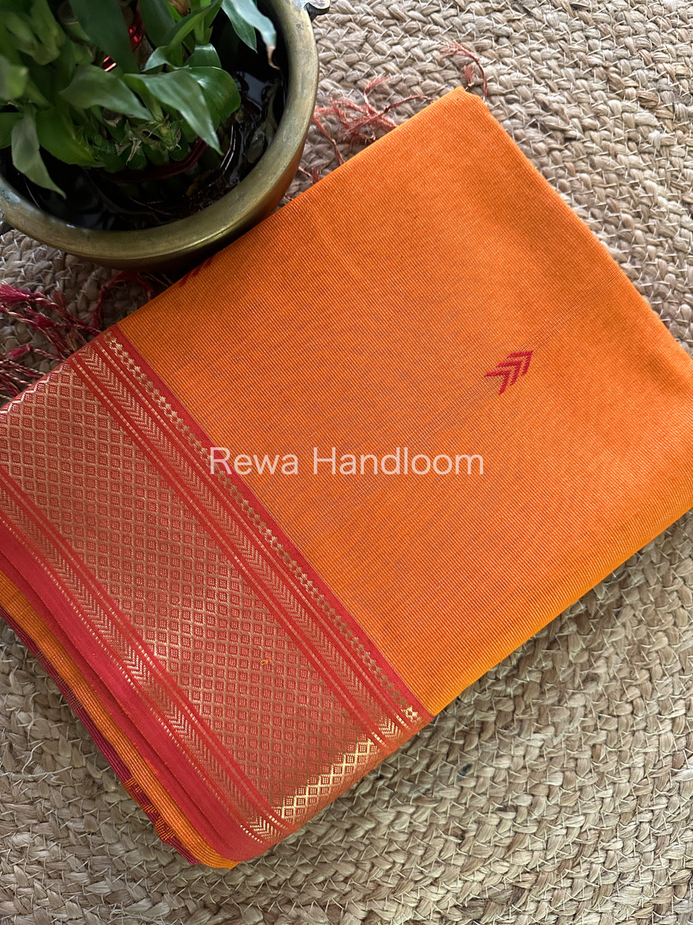 Maheshwari Orange Tissue Silk Saree-TBP02