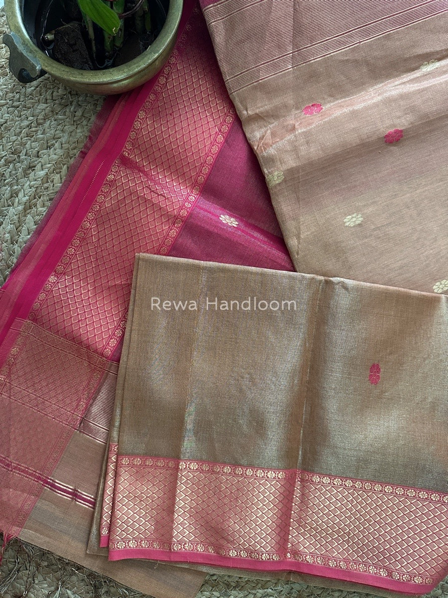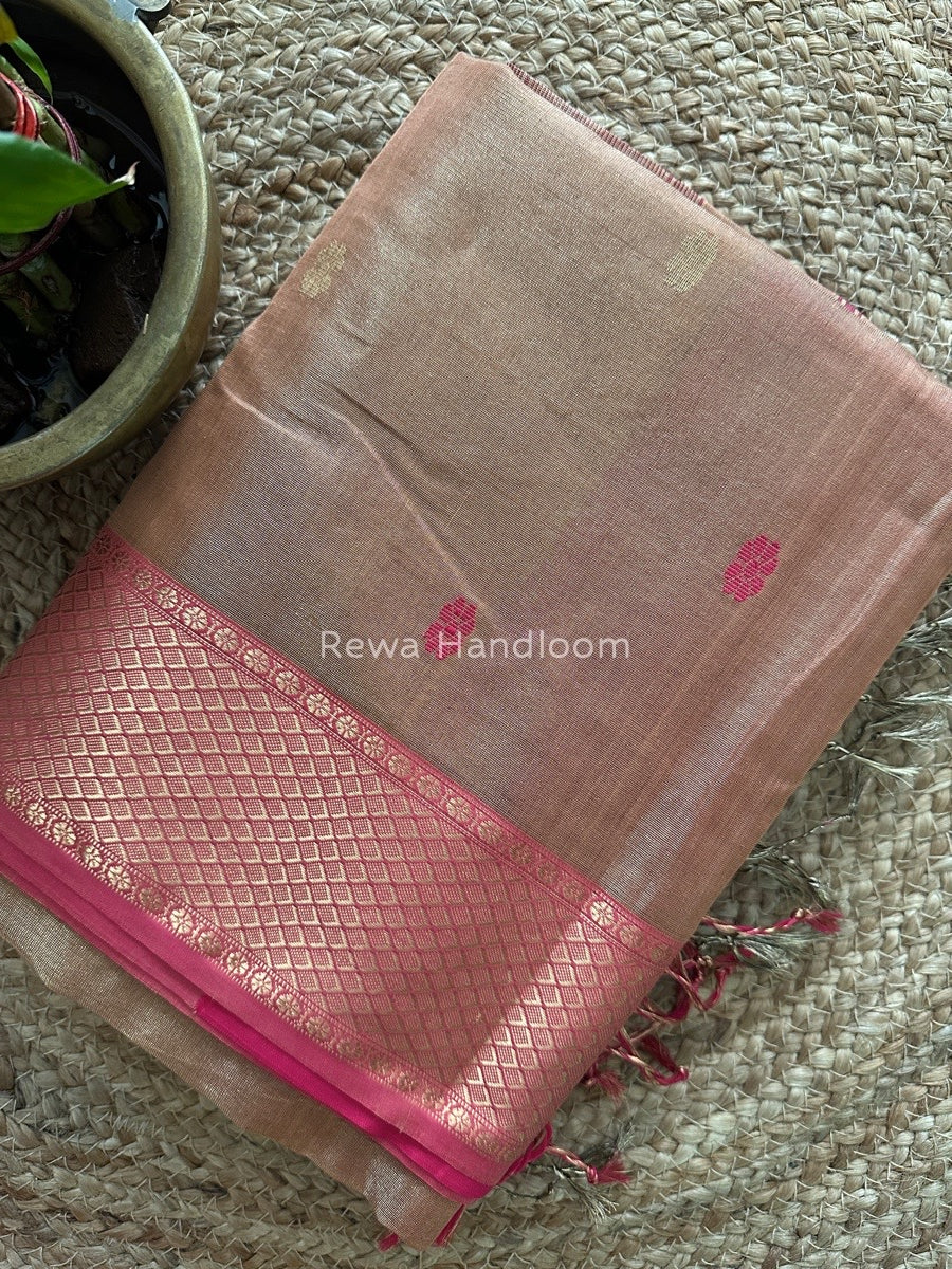 Maheshwari Peach Tissue Butti Saree TBBS059