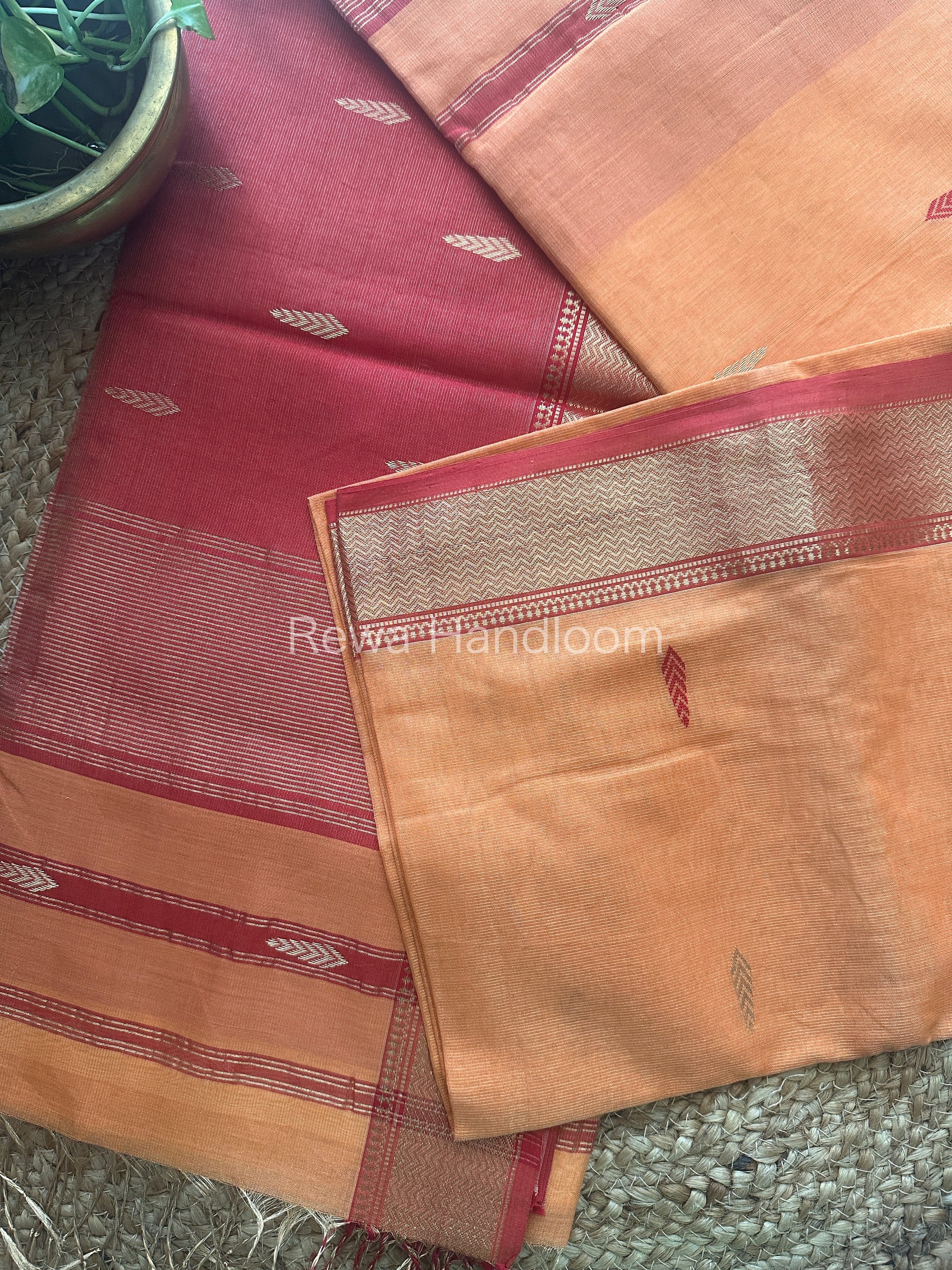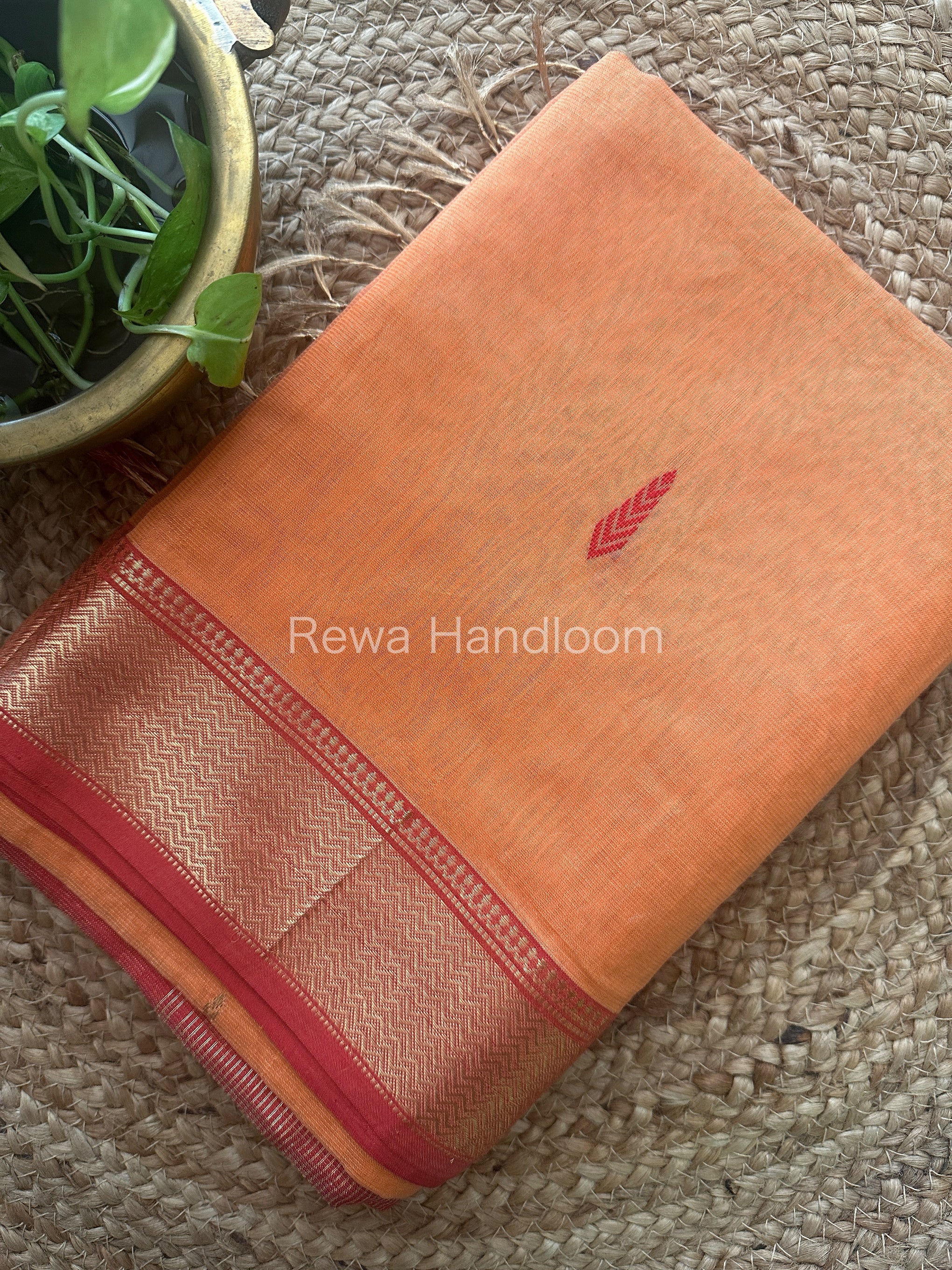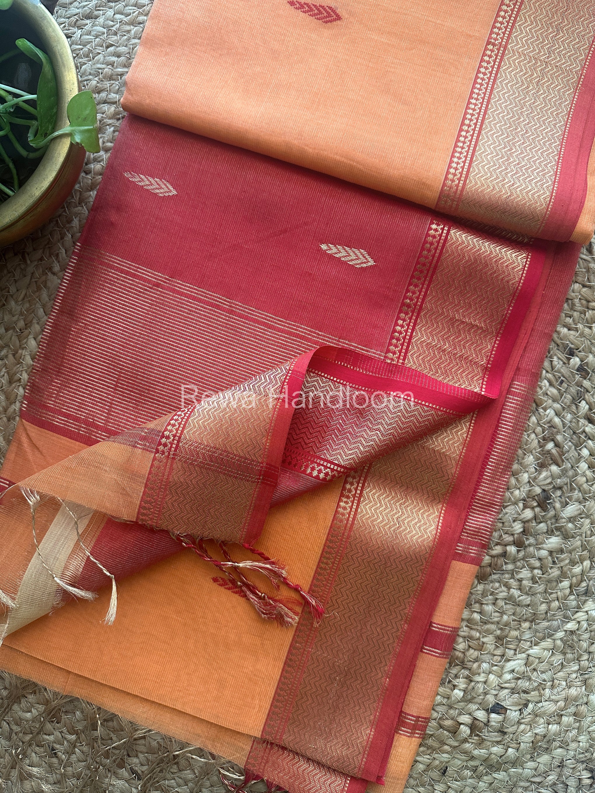Maheshwari Peach Tissue Butti Saree TBS003