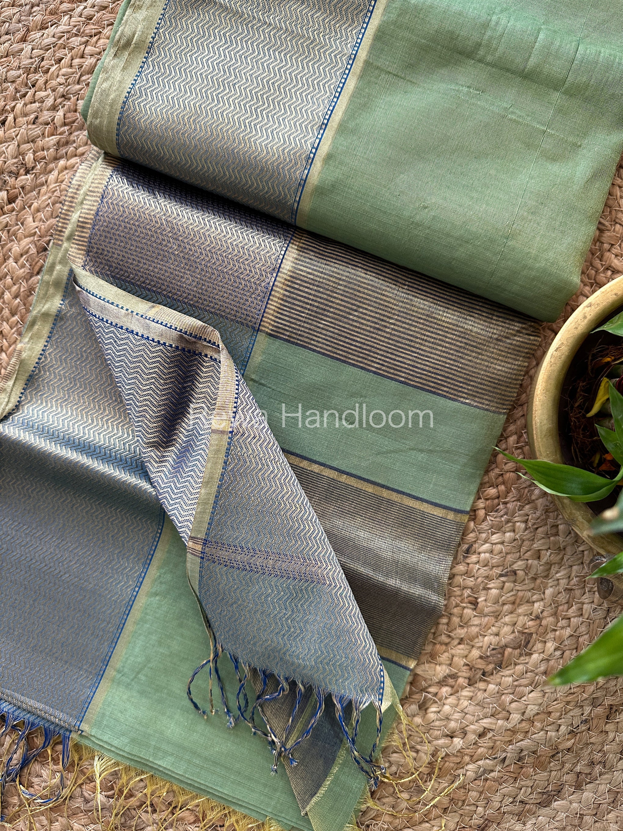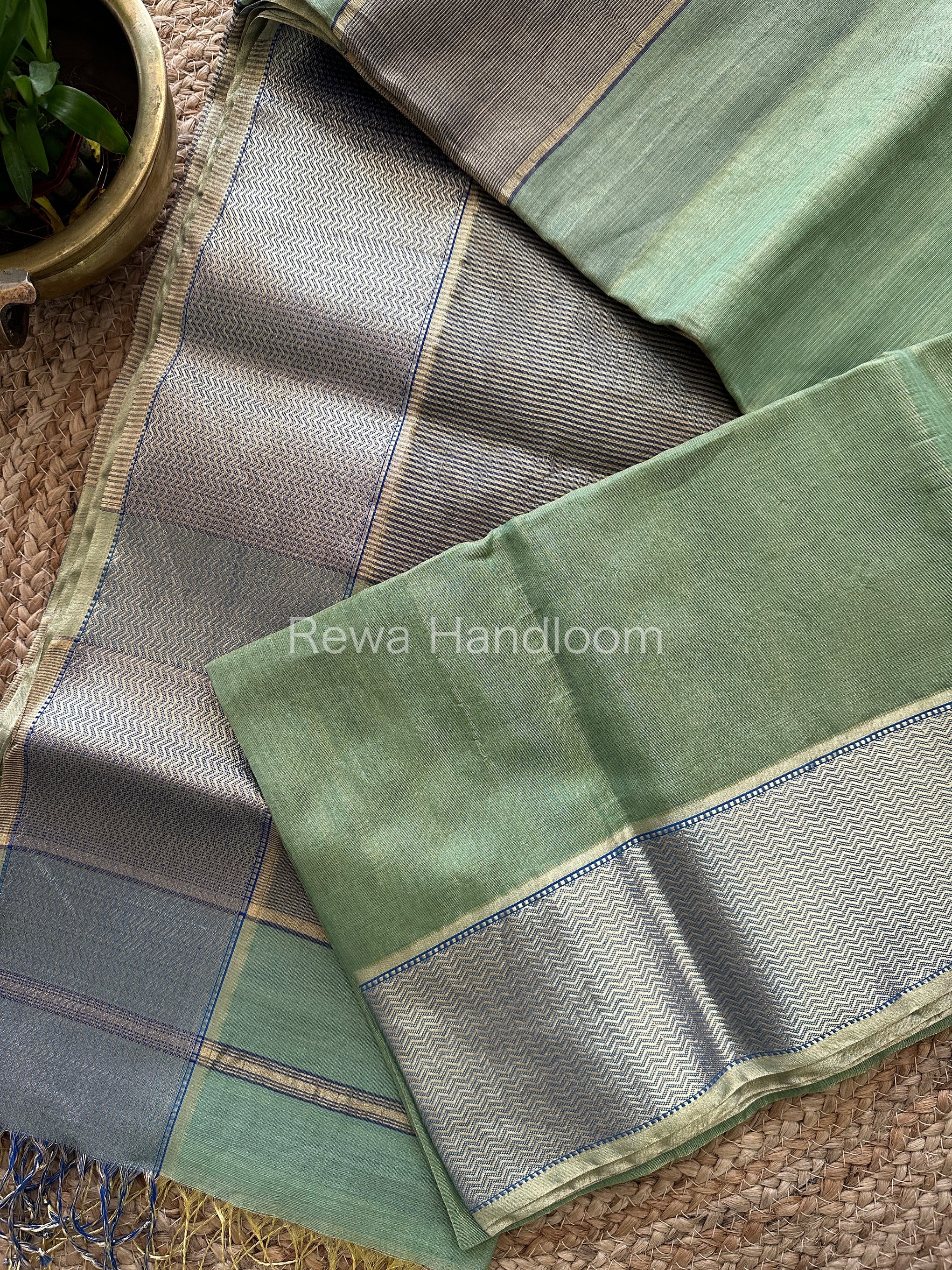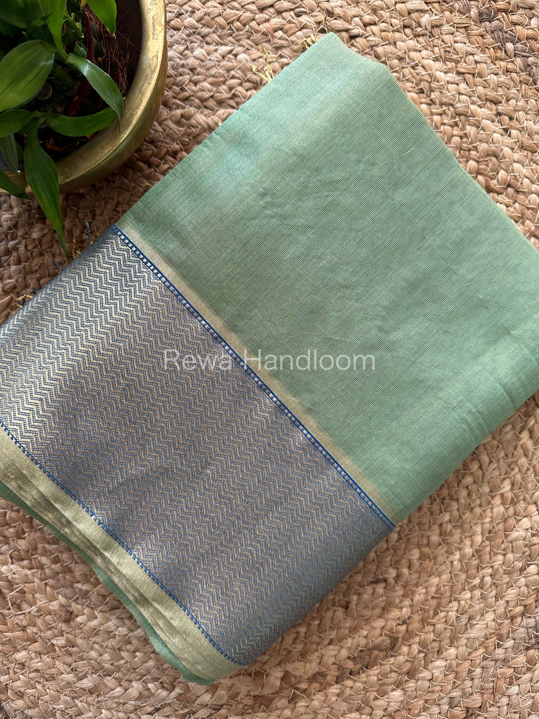 Maheshwari Pista Green Tissue Silk Saree-FT01