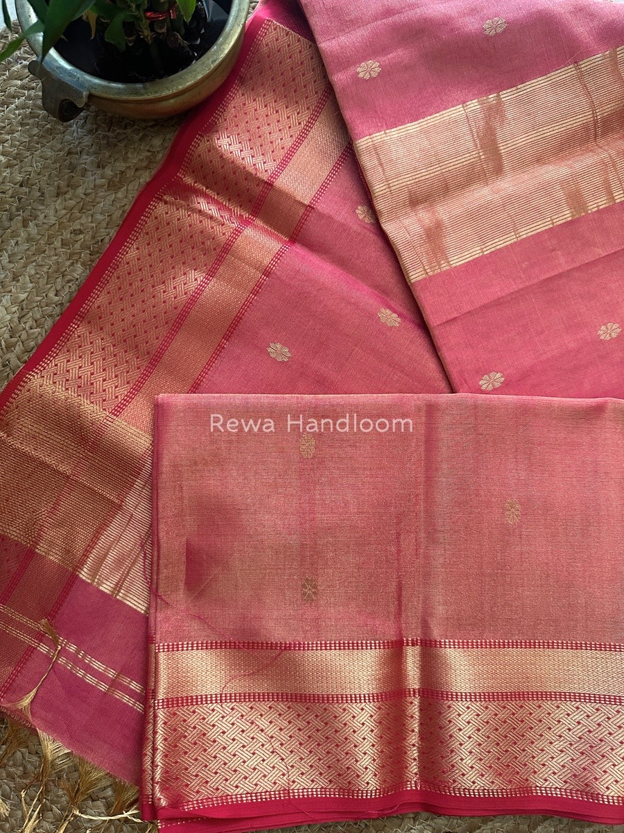 Maheshwari Rani Pink Tissue Butti Saree TBBS019