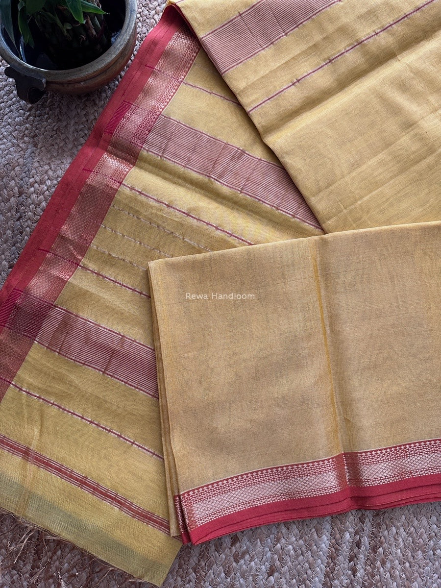 Maheshwari Yellow Tissue Silk Saree TB014