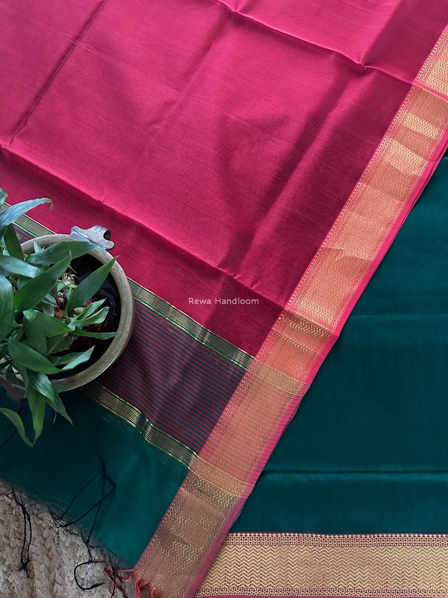 Maheshwari Green-Red Zari Border Dress Material BRD062