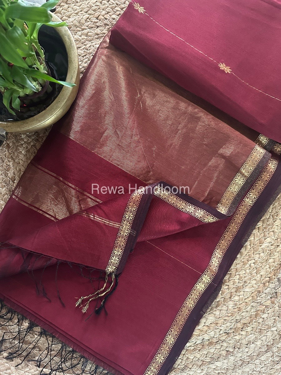 Dark Maroon Zari Butti Maheshwari Saree SBS045