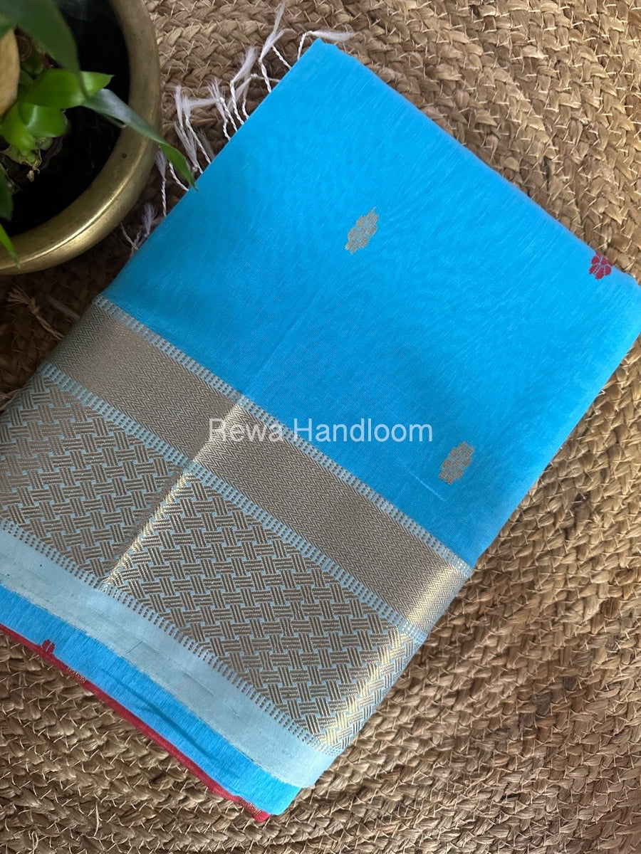 Sky Blue Zari Butti Maheshwari Saree JBS061