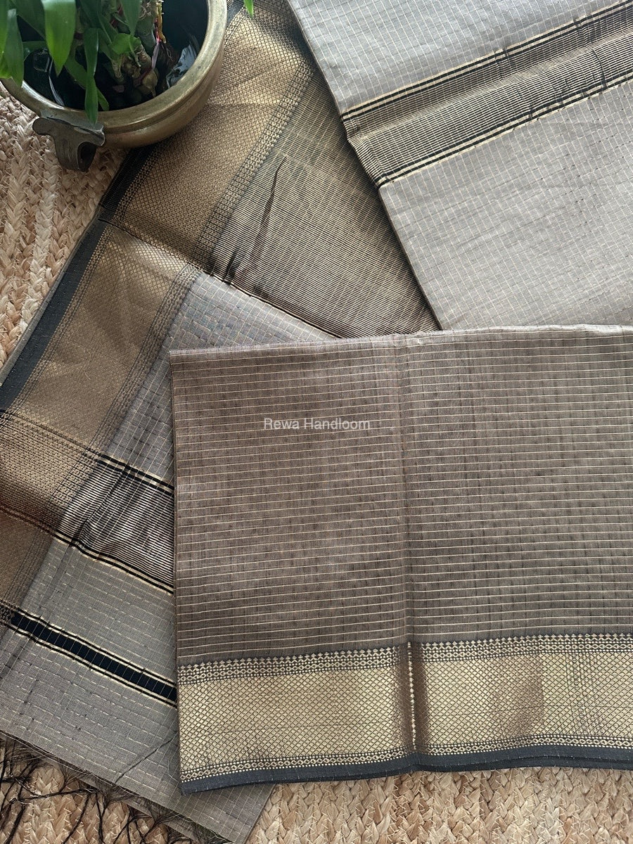 Maheshwari Beige Zari Checks Saree ZCHX416