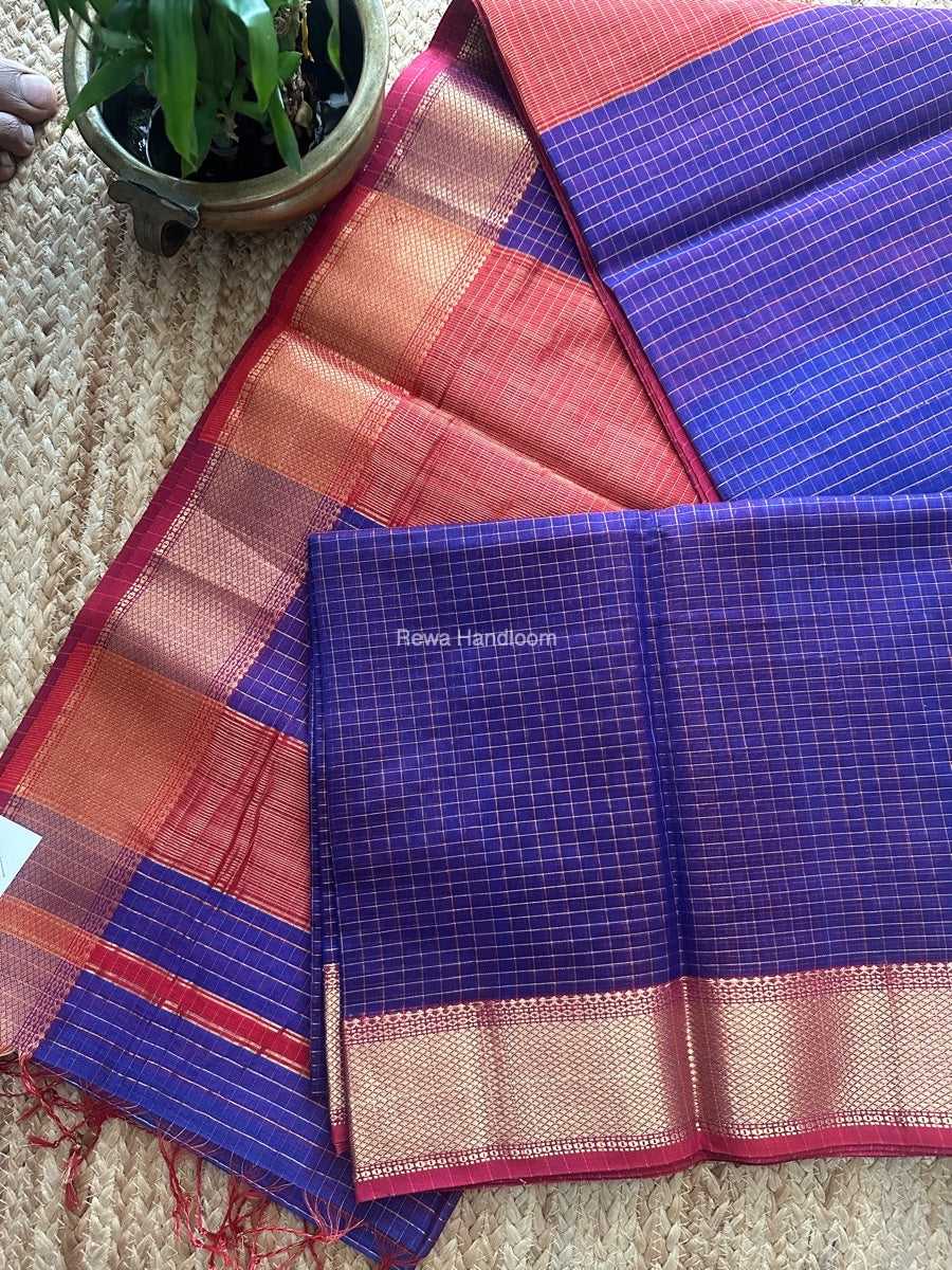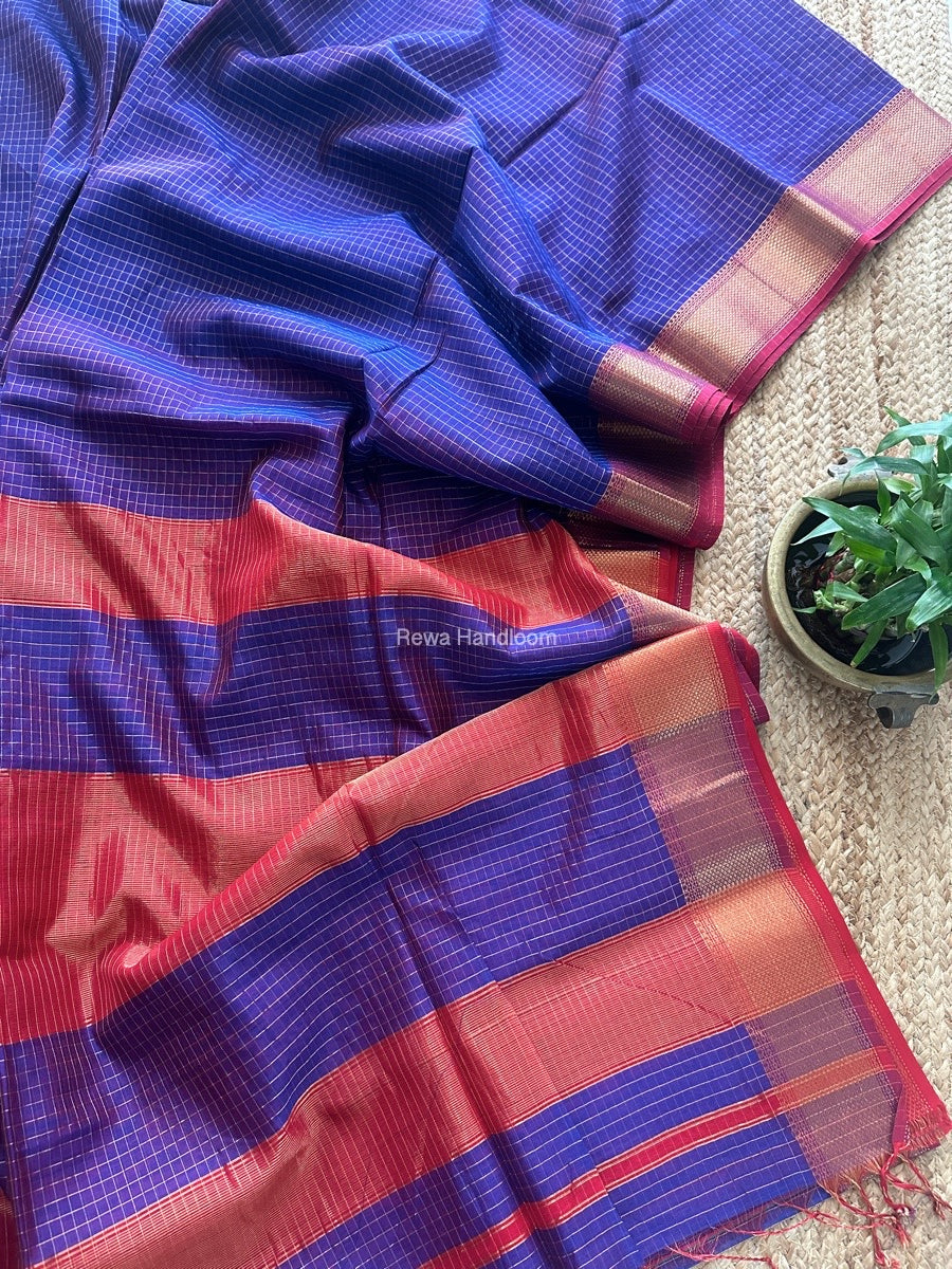Maheshwari Blue Zari Checks Saree ZCHX420