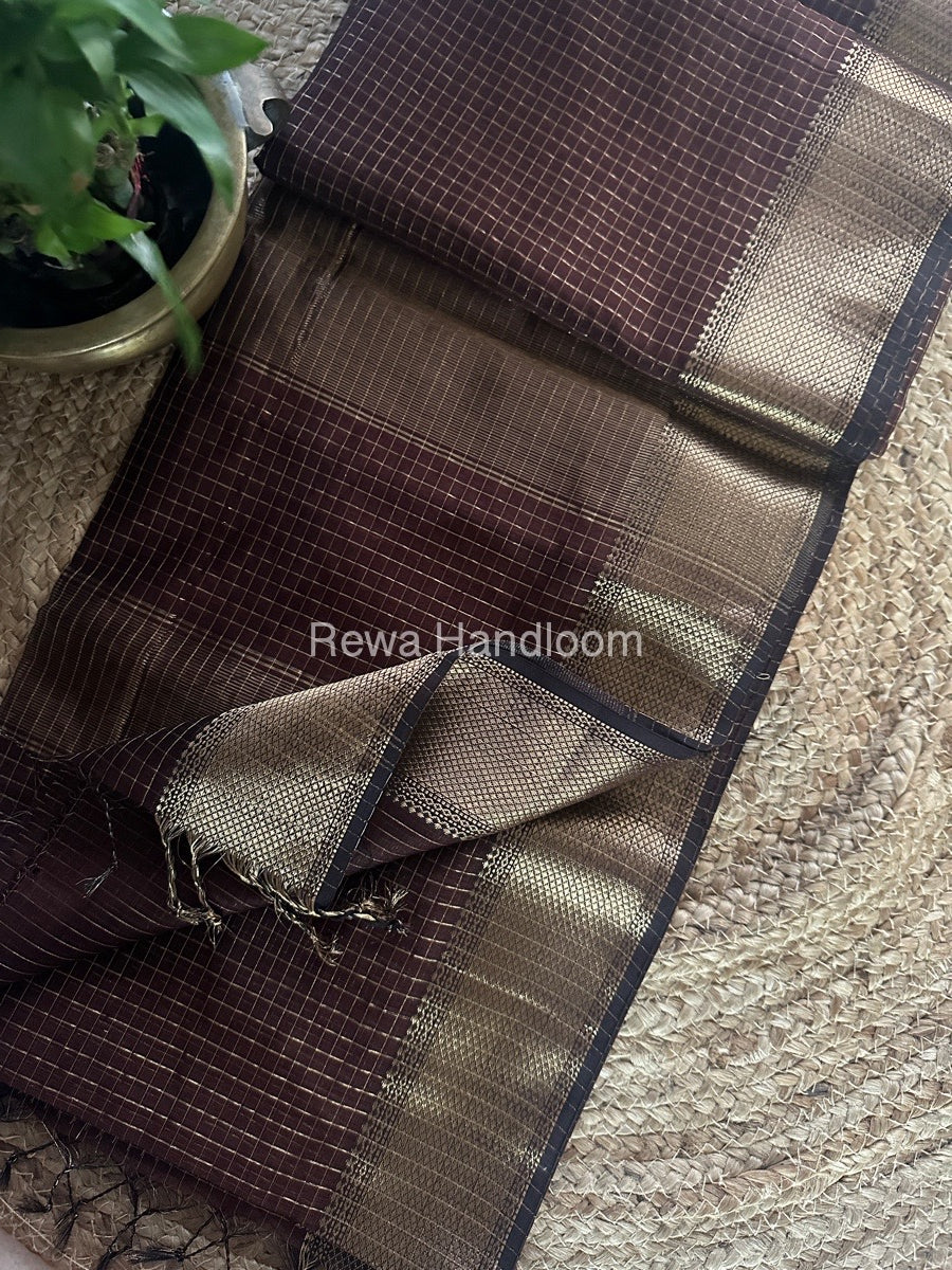 Maheshwari Brown Zari Checks Saree ZCHX323