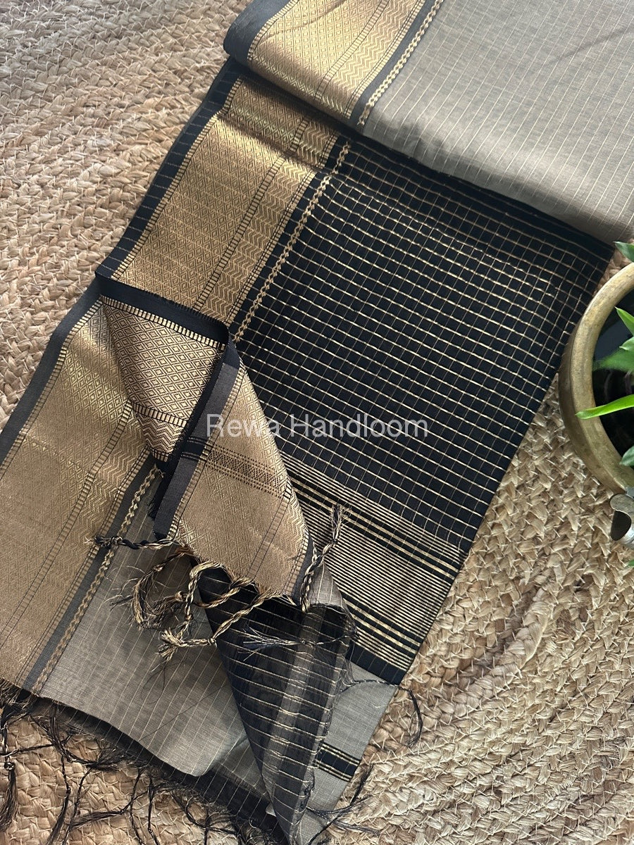 Maheshwari Grey Zari Linning Saree GL080