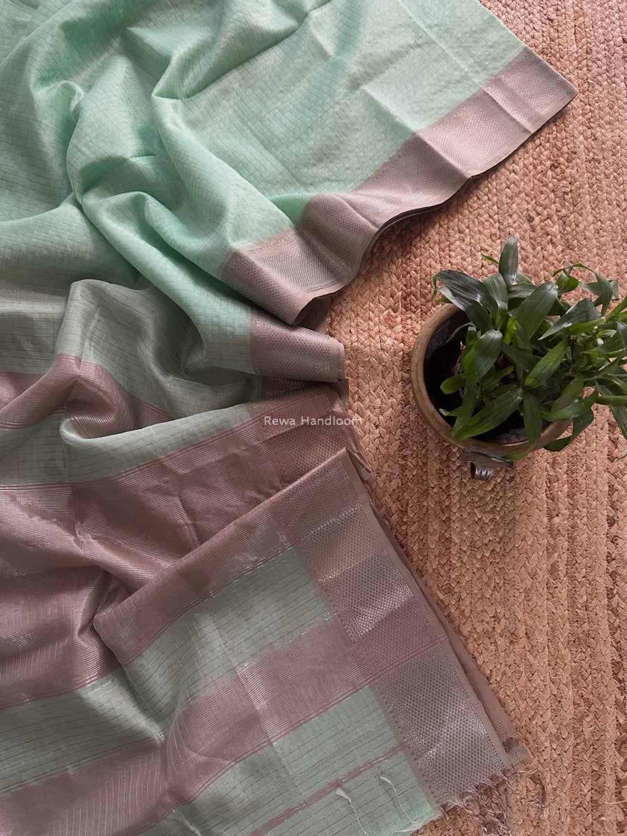 Maheshwari Light Aqua Green Silver Zari Checks Silk Saree SZ075