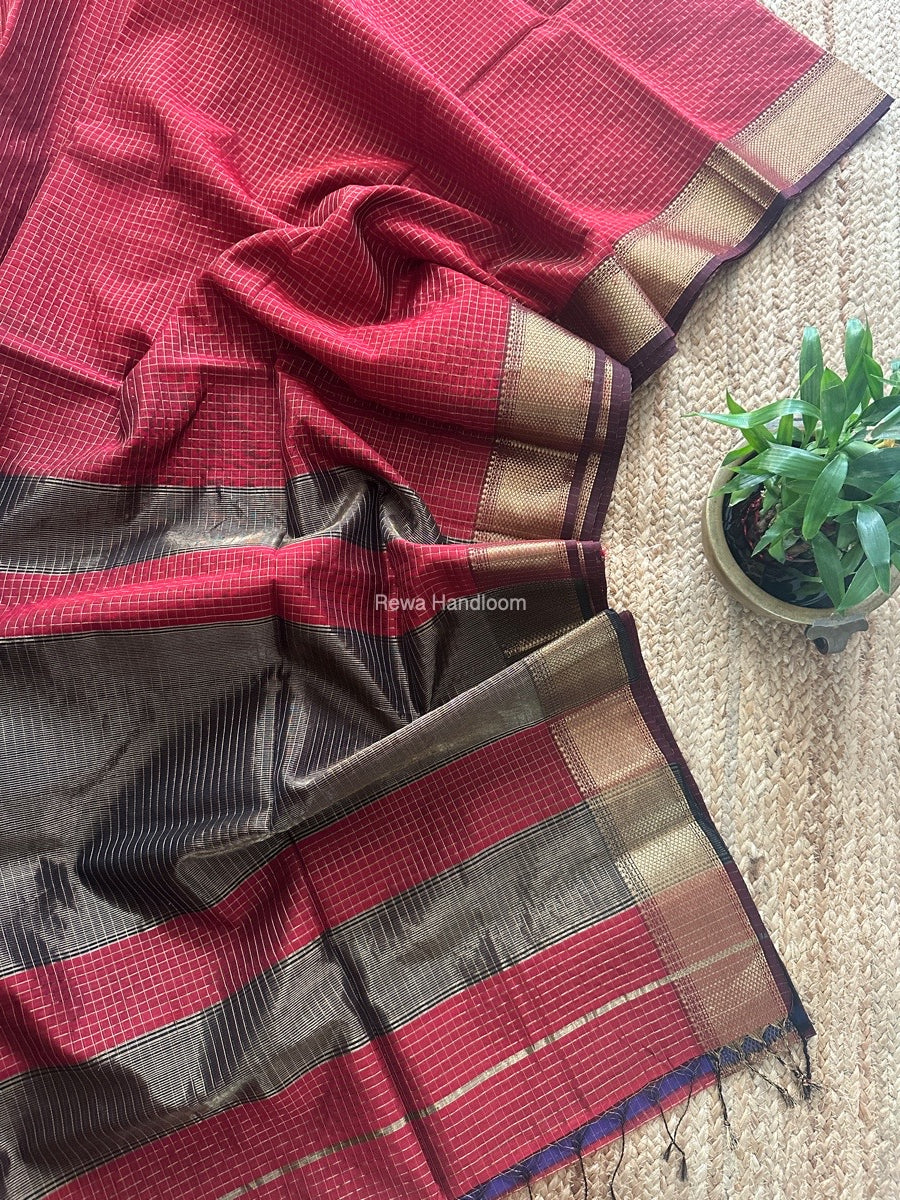 Maheshwari Maroon Zari Checks Saree ZCHX409