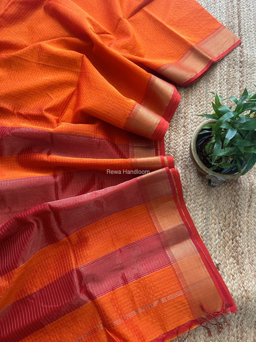 Maheshwari Orange Zari Checks Saree ZCHX425