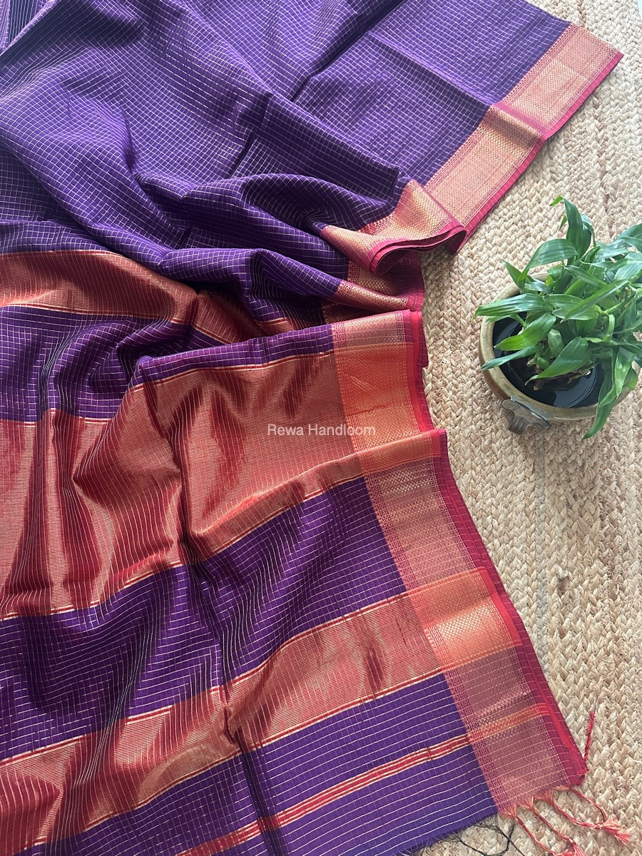 Maheshwari Purple Zari Checks Saree ZCHX408
