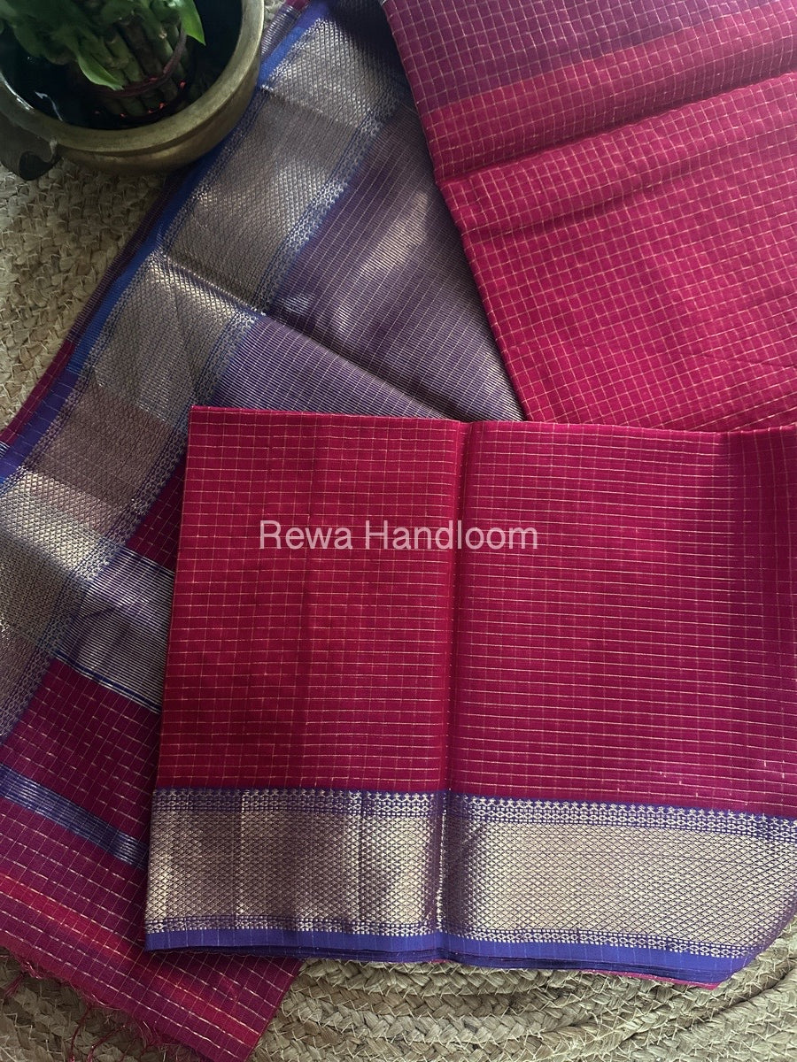 Maheshwari Rani Pink Zari Checks Saree ZCHX315