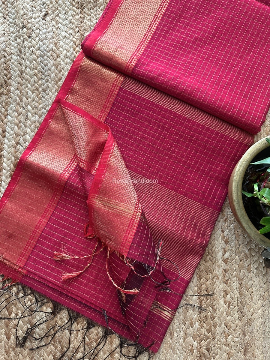 Maheshwari Rani Pink Zari Checks Saree ZCHX419