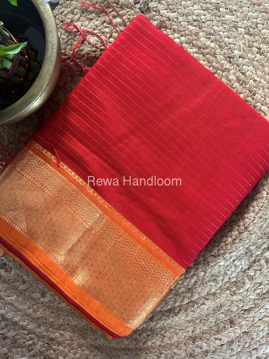 Maheshwari Red Zari Linning Saree GL071
