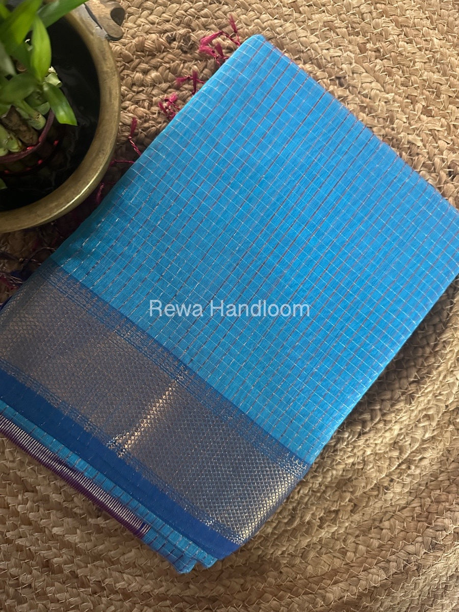Maheshwari Sky Blue Zari Checks Saree ZCHX322