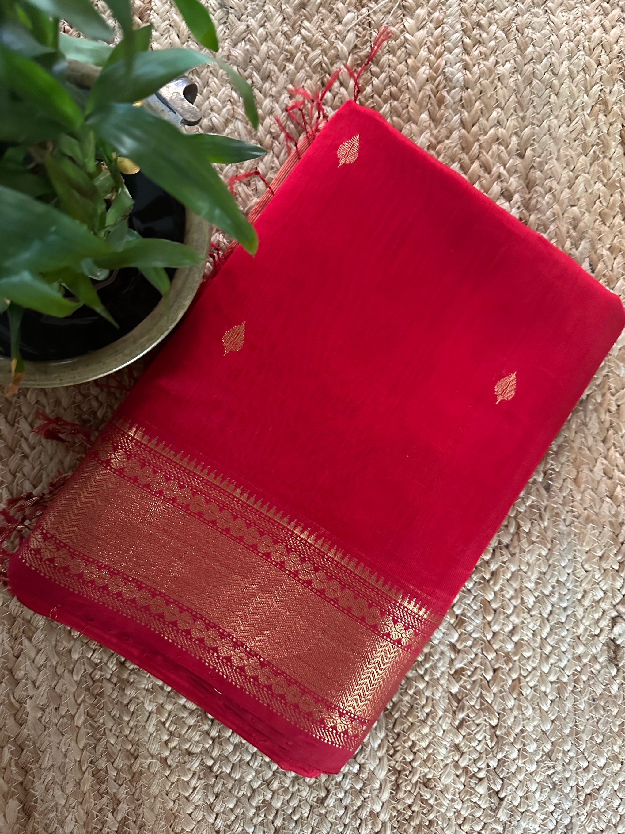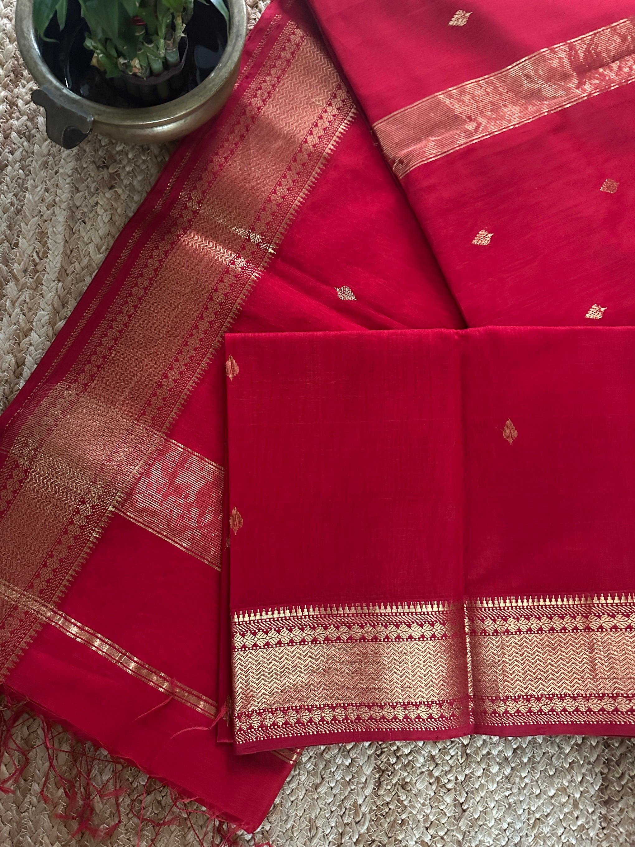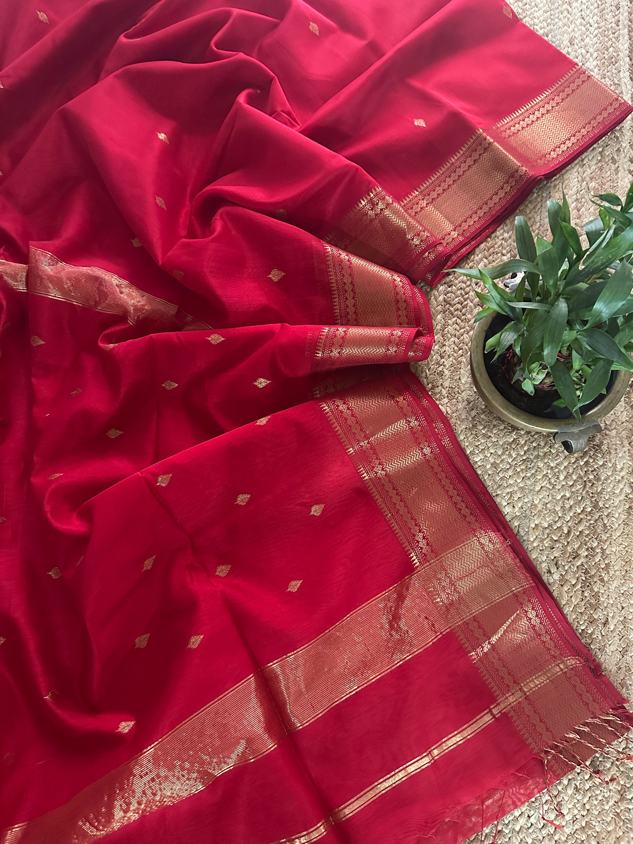 Red Zari Butti Maheshwari Saree DBSS07