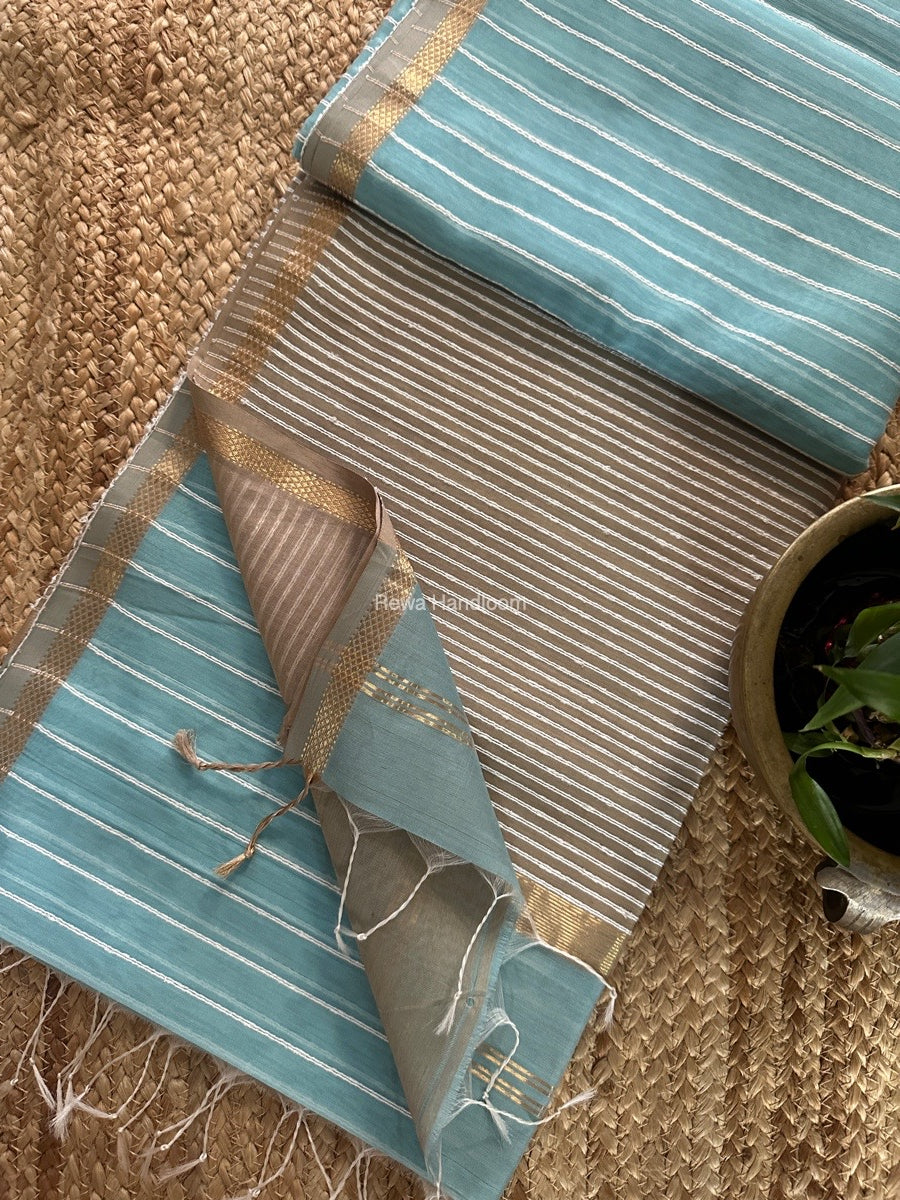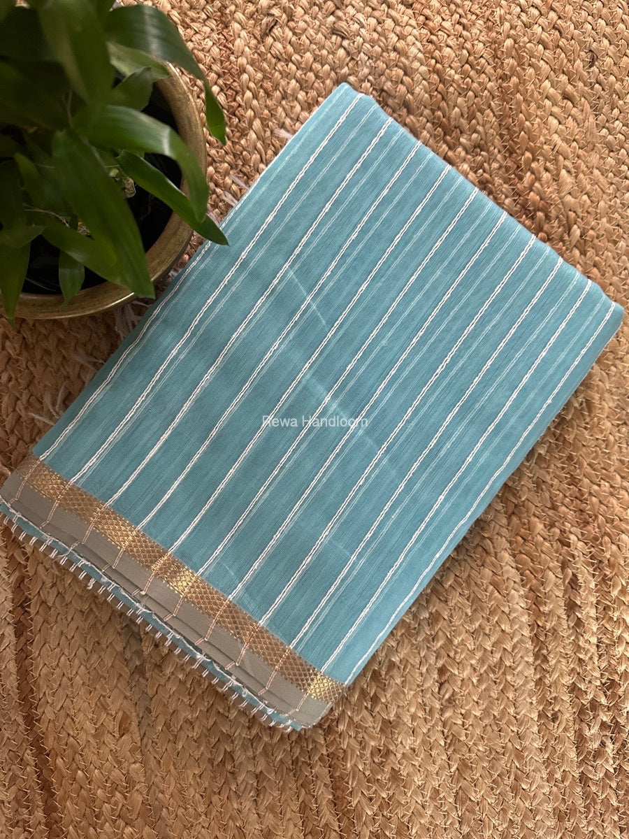Maheshwari Aqua Gichha Thread Lining Saree GTLS052