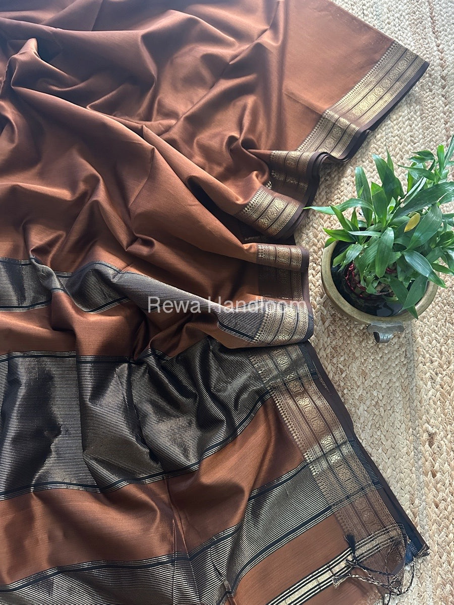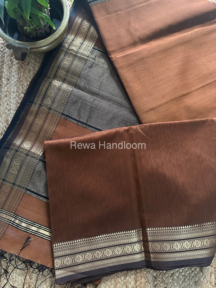 Maheshwari Brown Zari Border Plain Saree ZSBS024