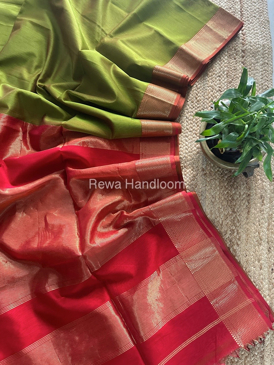 Maheshwari Chutney Green Zari Border Plain Saree ZS0106