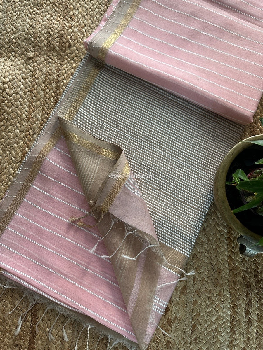 Maheshwari Light Pink Gichha Thread Lining Saree GTLS037