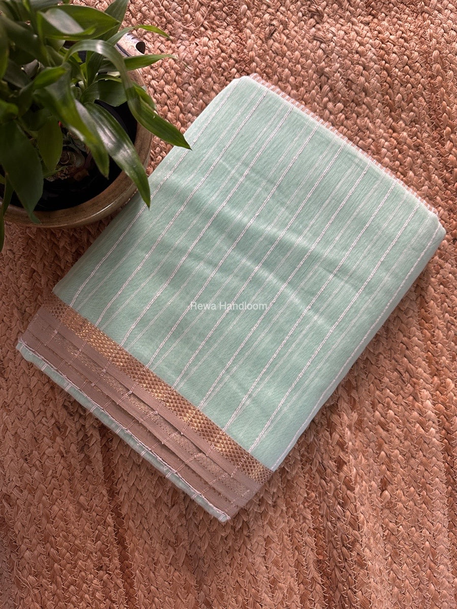 Maheshwari Light Sea Green Gichha Thread Lining Saree GTLS038