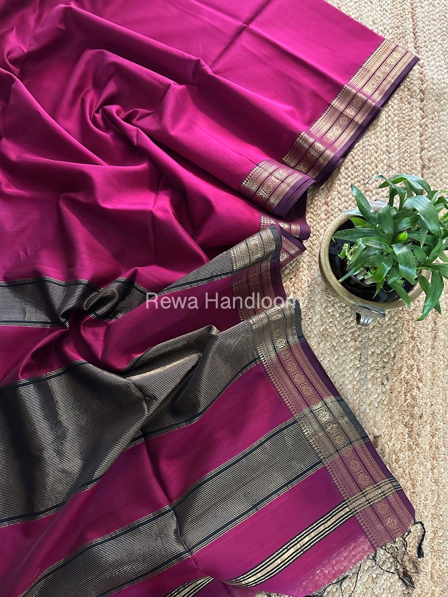 Maheshwari Magenta Zari Border Plain Saree ZSBS020