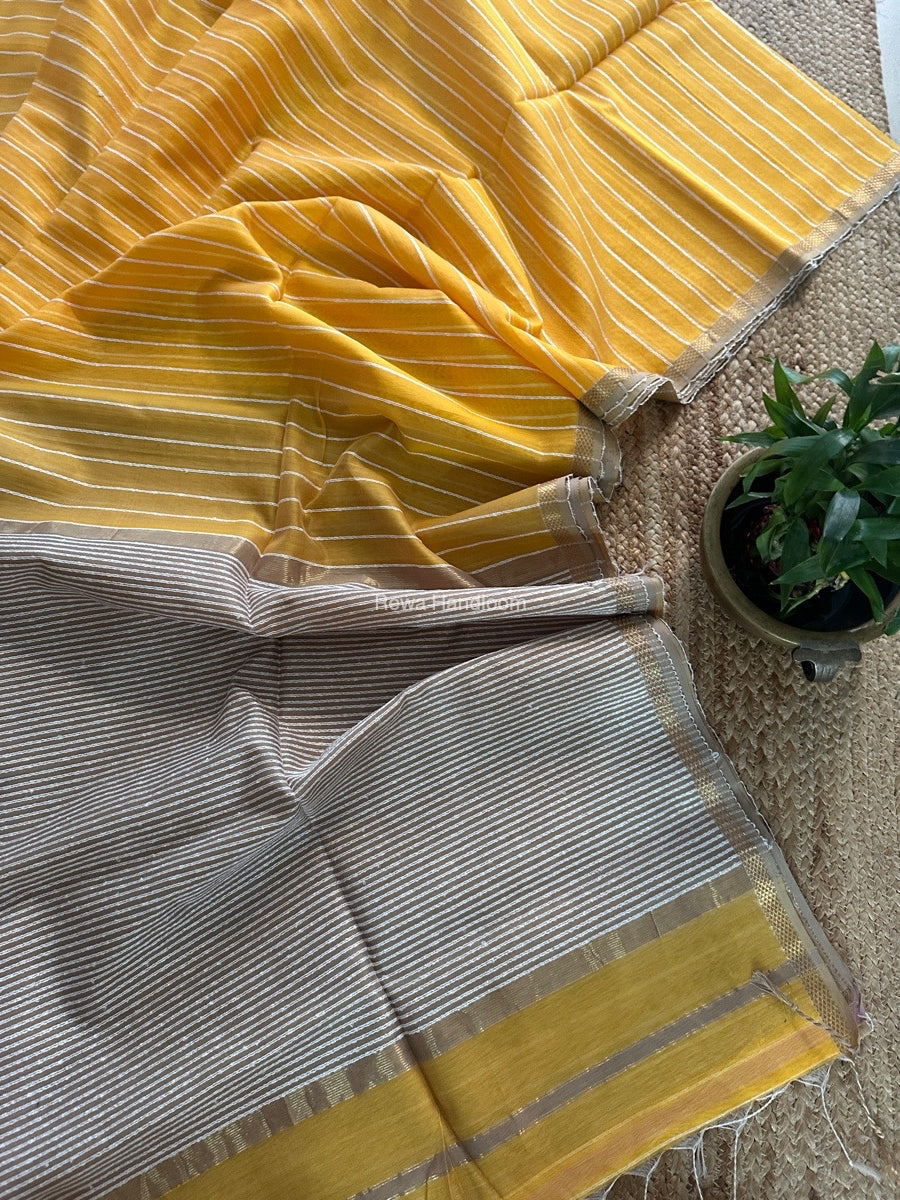 Maheshwari Mango Yellow Gichha Thread Lining Saree GTLS049