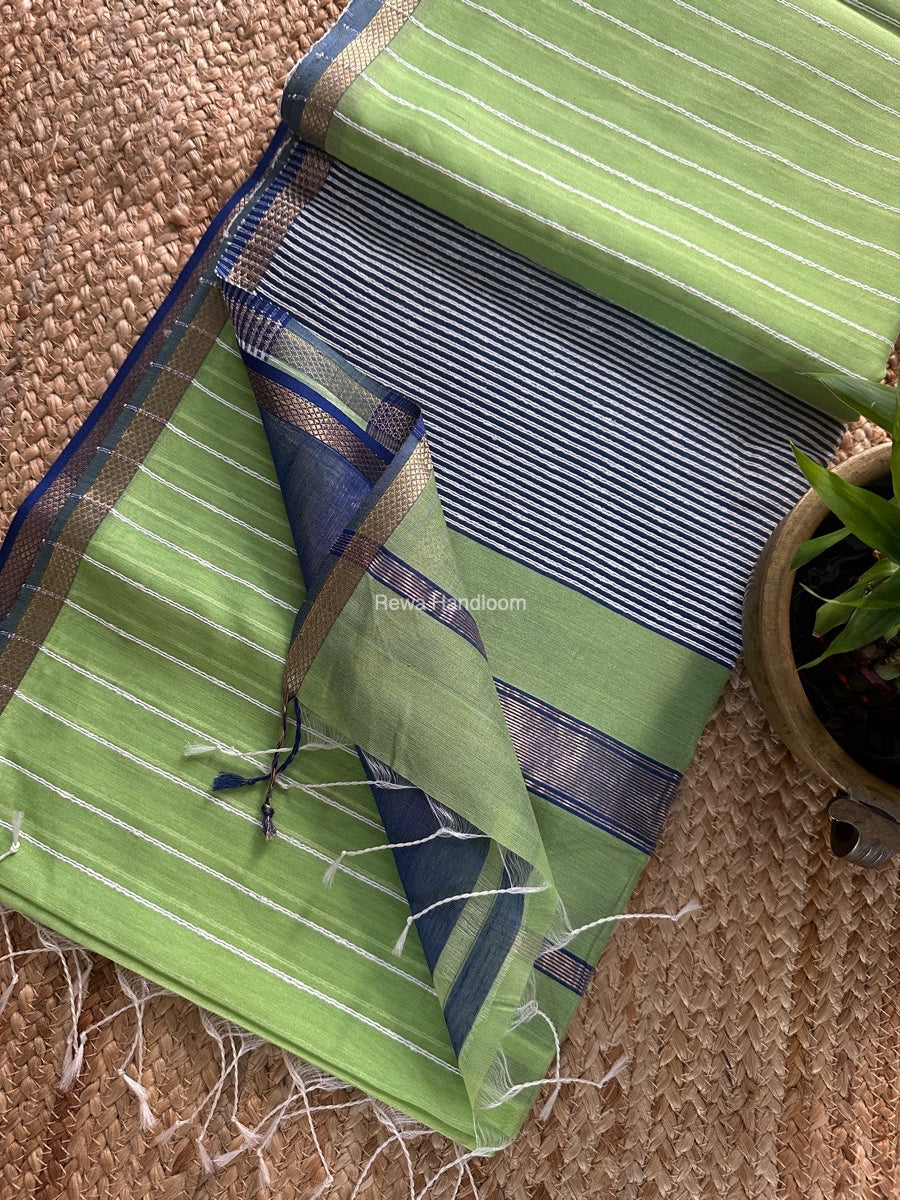 Maheshwari Parrot Green Gichha Thread Lining Saree GTLS026