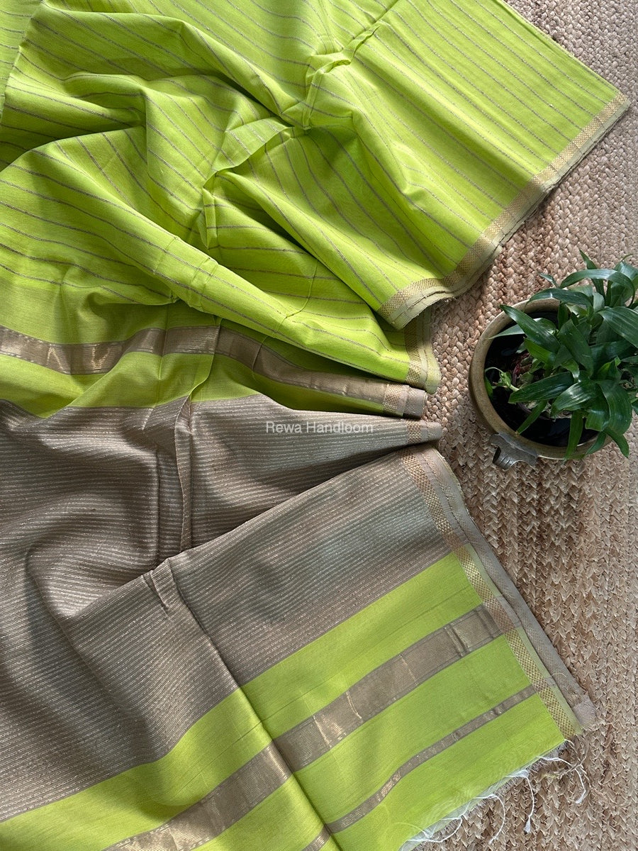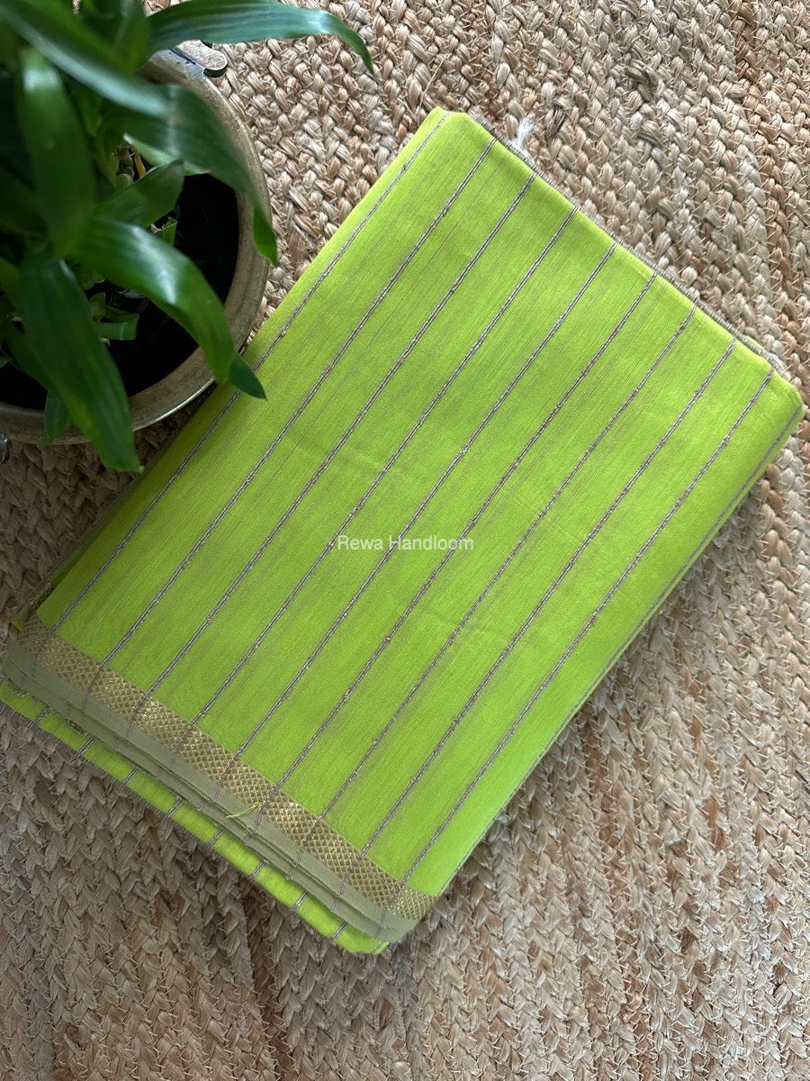 Maheshwari Parrot Green Gichha Thread Lining Saree GTLS043