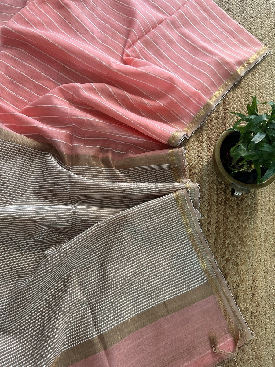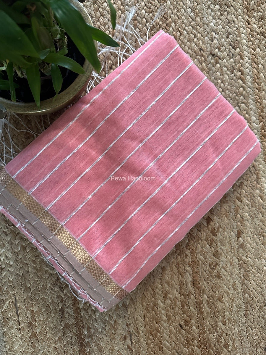 Maheshwari Peach Gichha Thread Lining Saree GTLS046