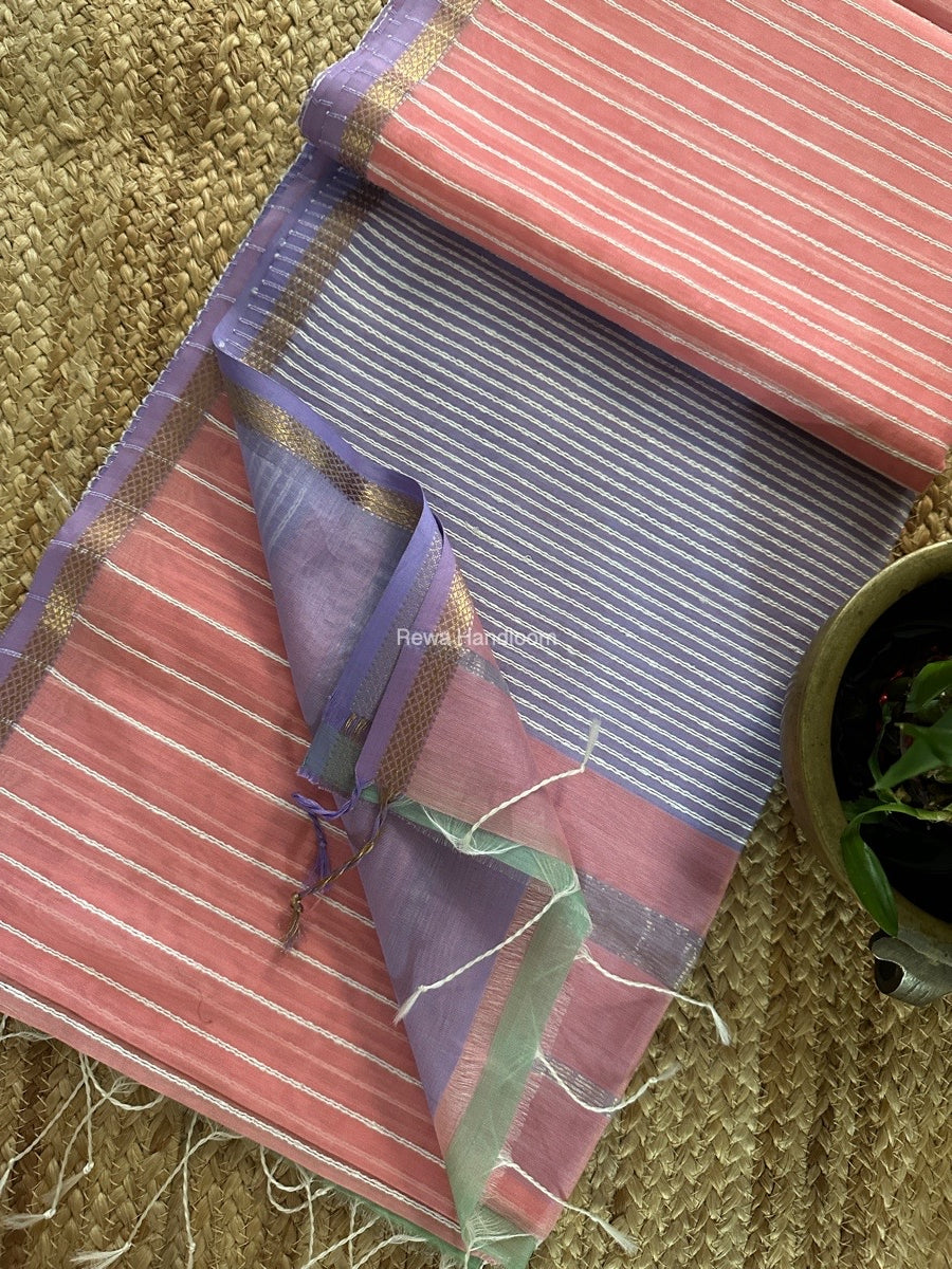 Maheshwari Peach Pink Gichha Thread Lining Saree GTLS050