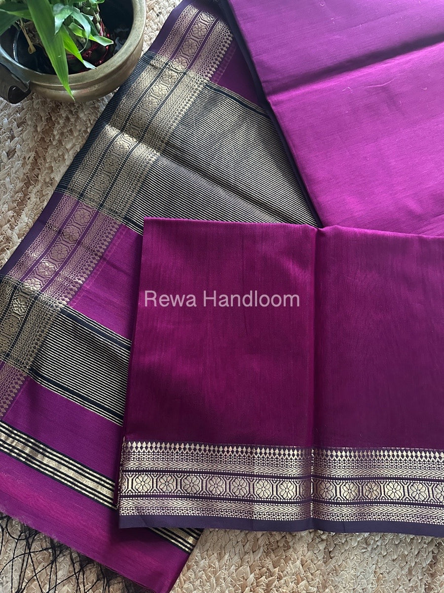 Maheshwari Purple Zari Border Plain Saree ZSBS016