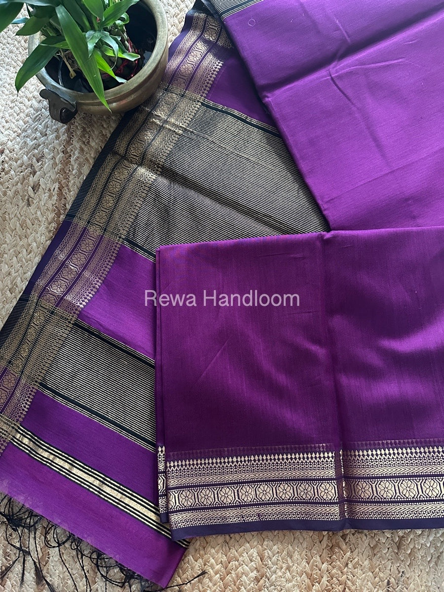 Maheshwari Purple Zari Border Plain Saree ZSBS022