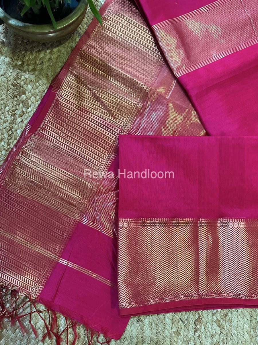Maheshwari Rani Pink Zari Border Plain Saree ZS0100