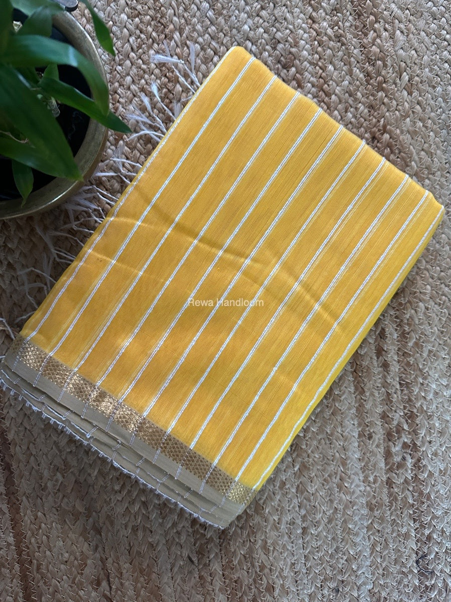 Maheshwari Yellow Gichha Thread Lining Saree GTLS047
