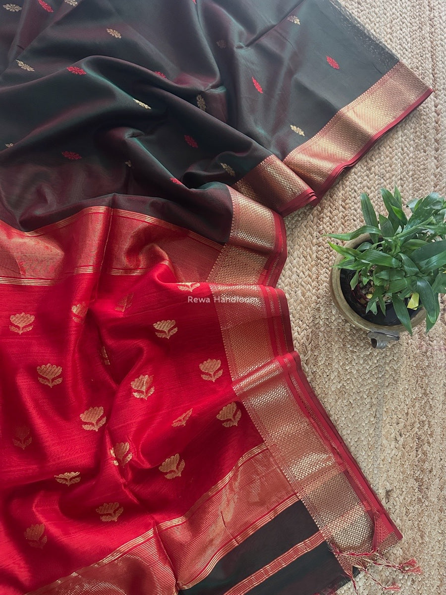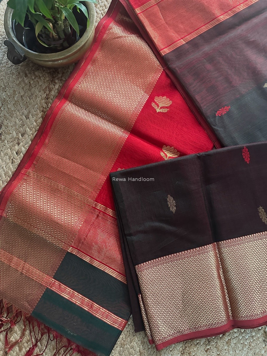 Butta Zari Border Maheshwari Saree