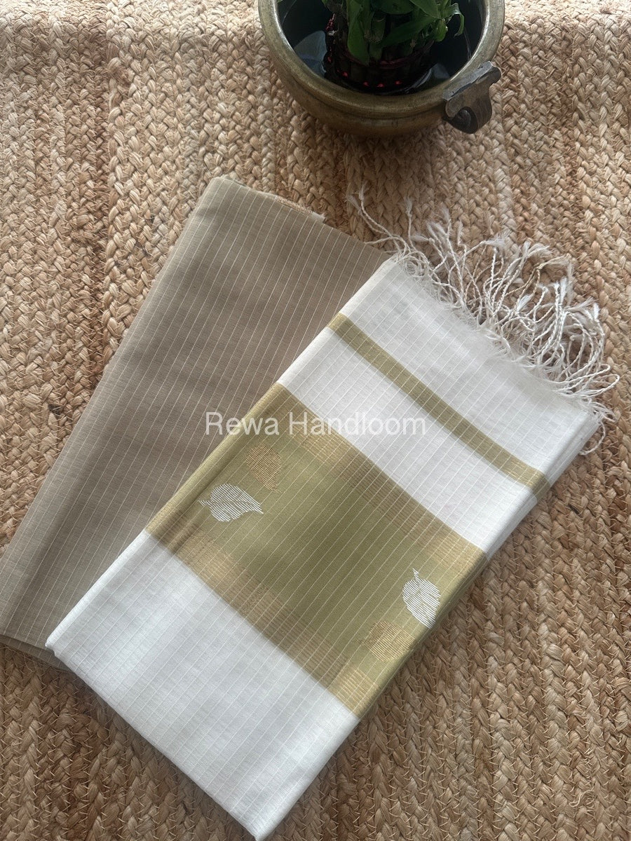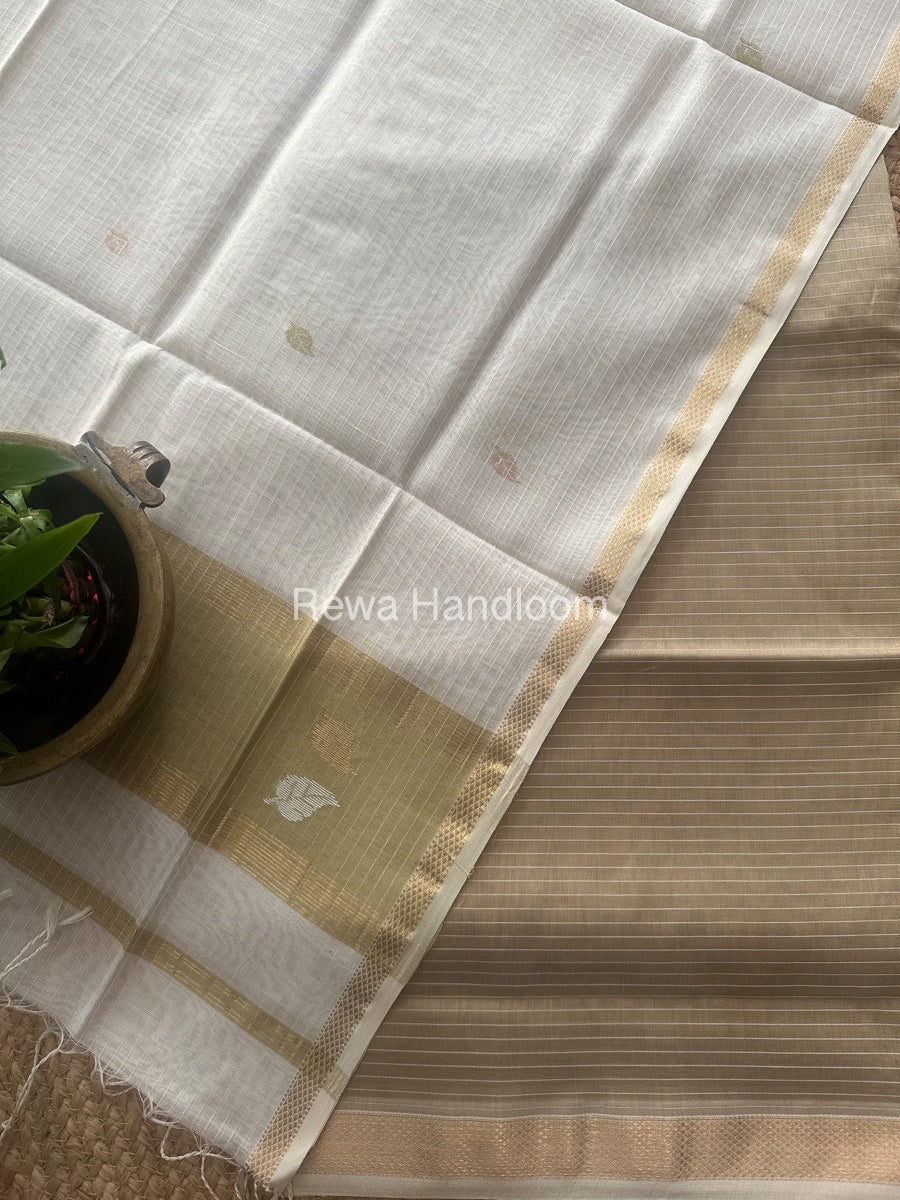 Maheshwari Beige-White Patti Butti Top-Dupatta Set MS077