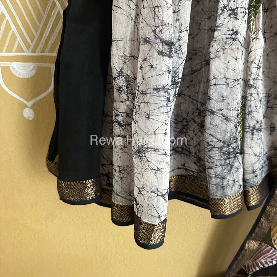 Maheshwari Black Batik Indonesian Print Saree IBS060