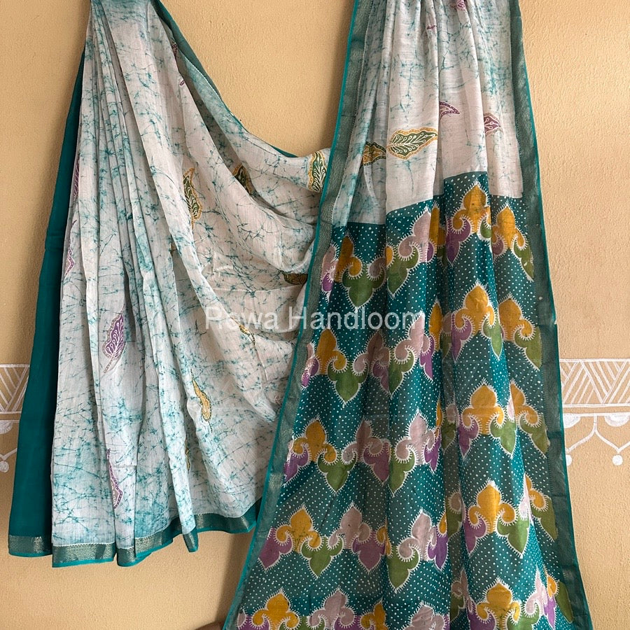 Maheshwari Bottle Green Batik Indonesian Print Saree IBS049