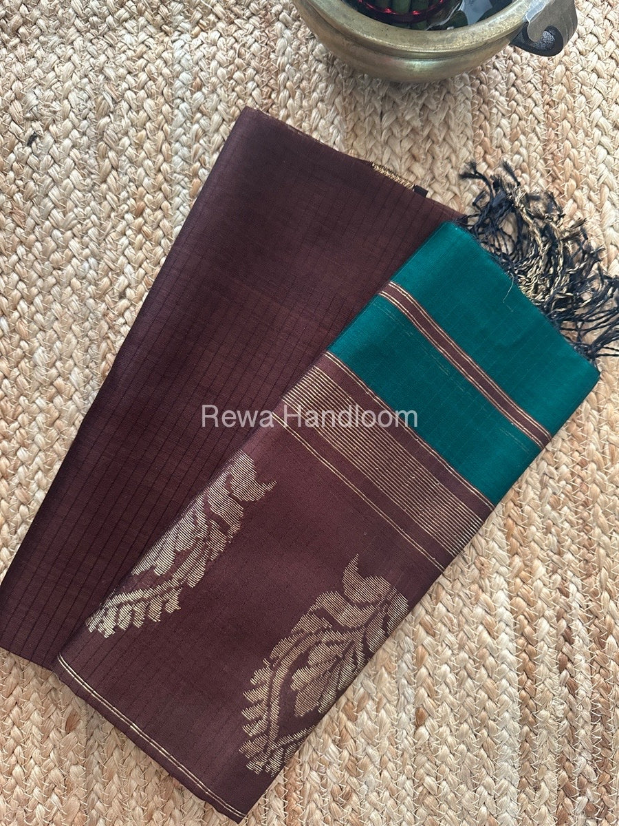 Maheshwari Brown-Green Motifs Top-Dupatta Set MS0160