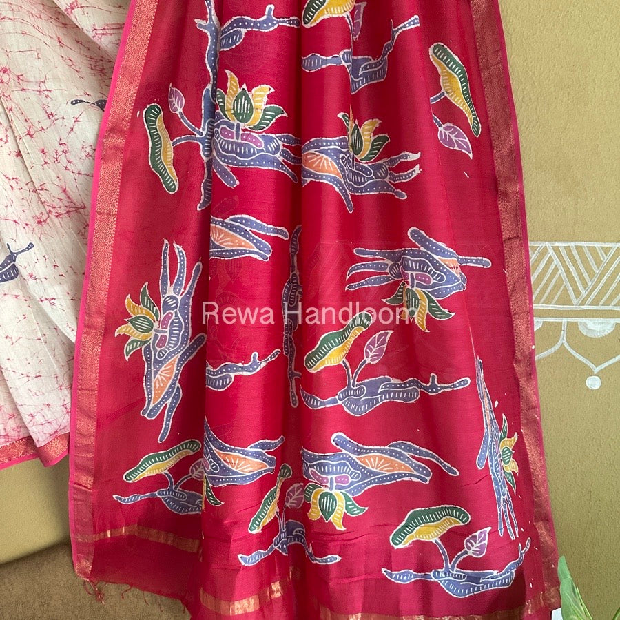 Maheshwari Dark Pink Batik Indonesian Print Saree IBS024