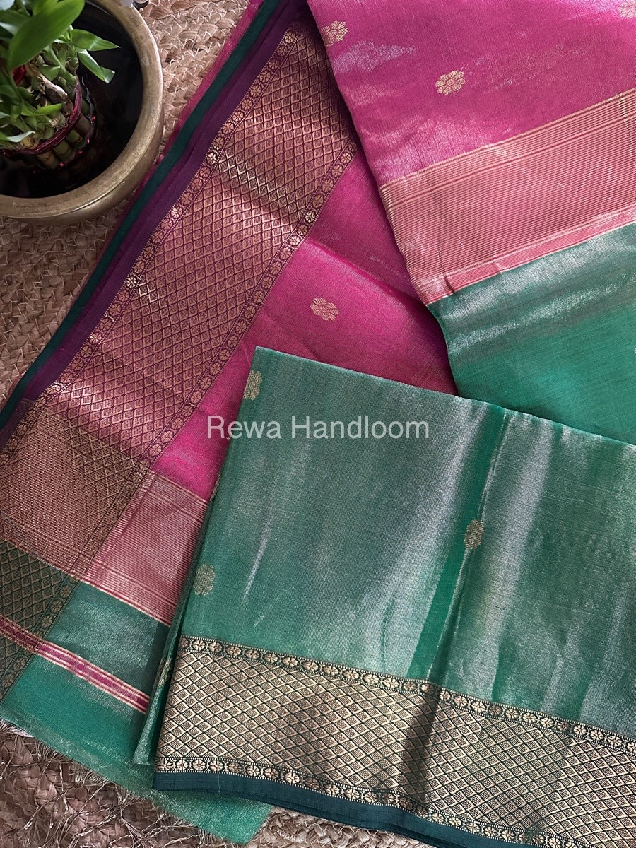 Maheshwari Green Tissue Butti Saree TBBS084